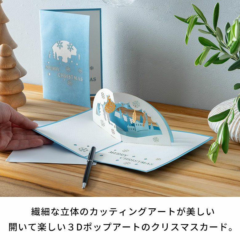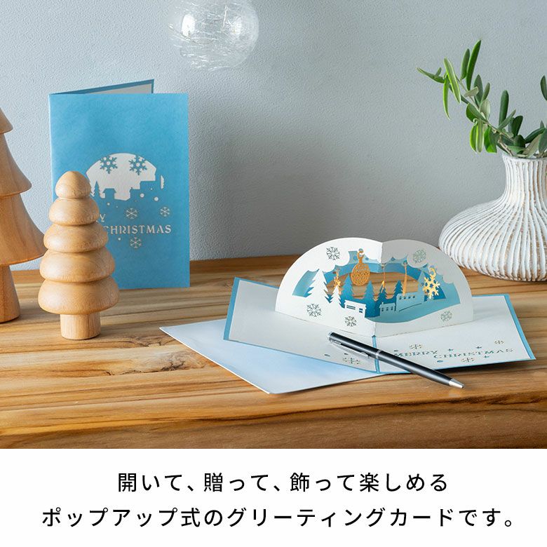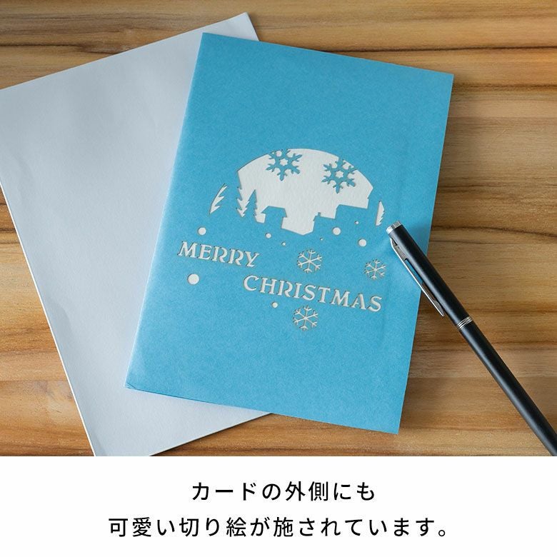 白い封筒付きで、家族や友人、取引先への贈り物にもぴったり。「贈る」だけでなく、「飾る」楽しみもある、心に残るクリスマスカード。大切な人へのプレゼントを、より印象的に演出してくれます。