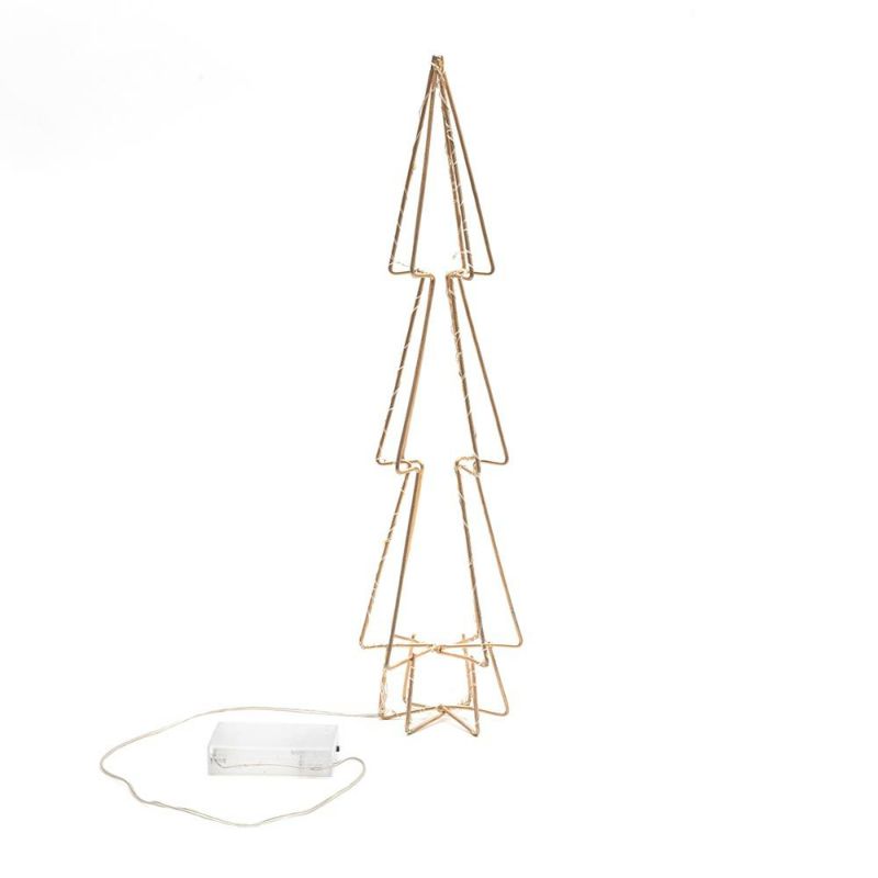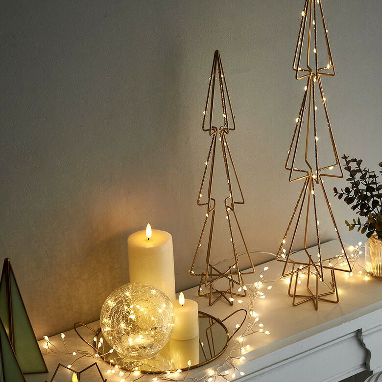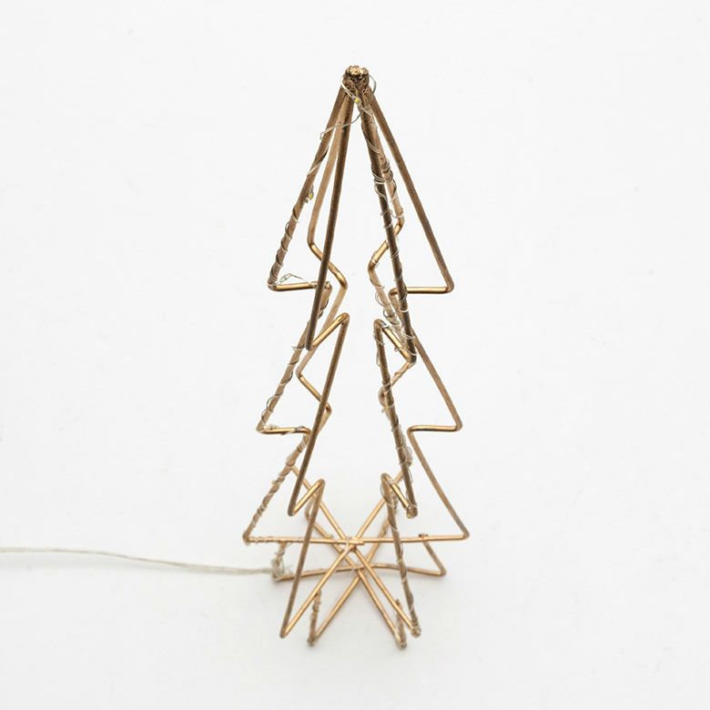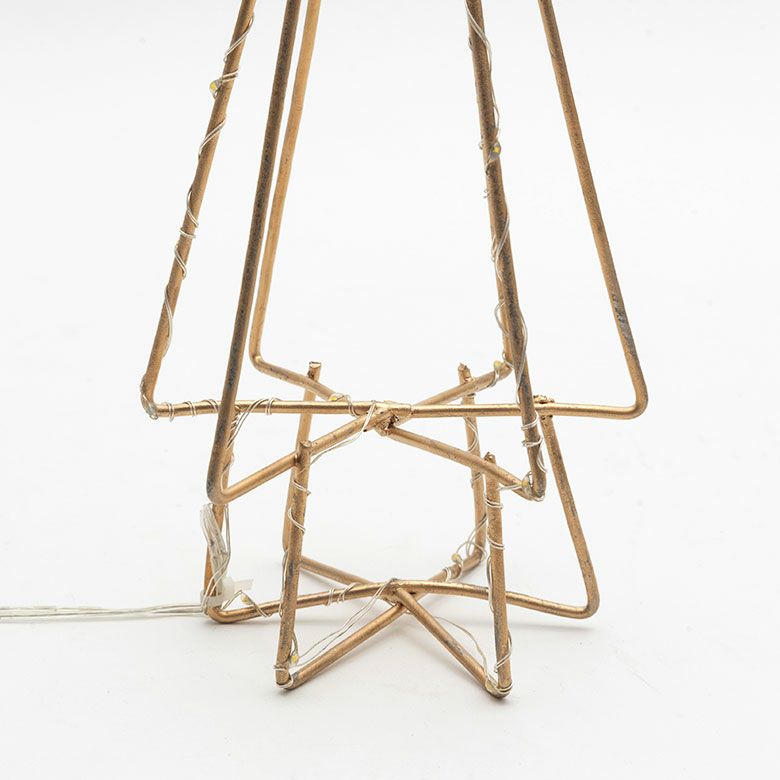 ゴールドのフレームにストリングライトを飾り付けた、ツリーのデコレーション。
