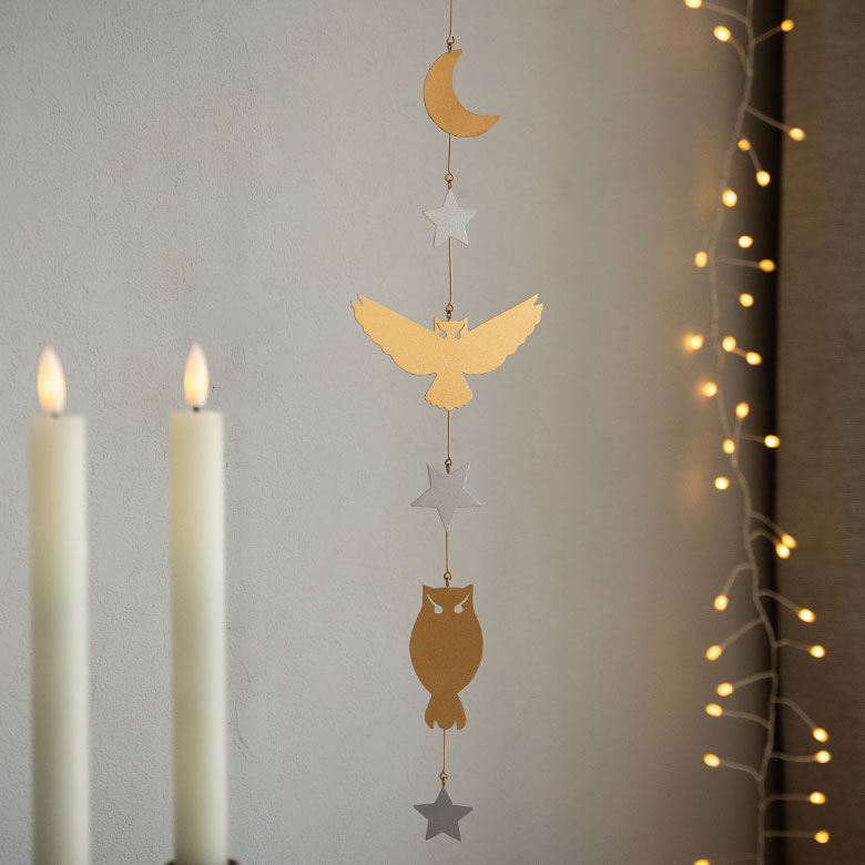 夜行性のフクロウには夜空に浮かぶ月と星がとってもお似合い。