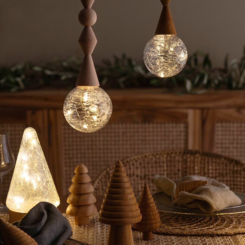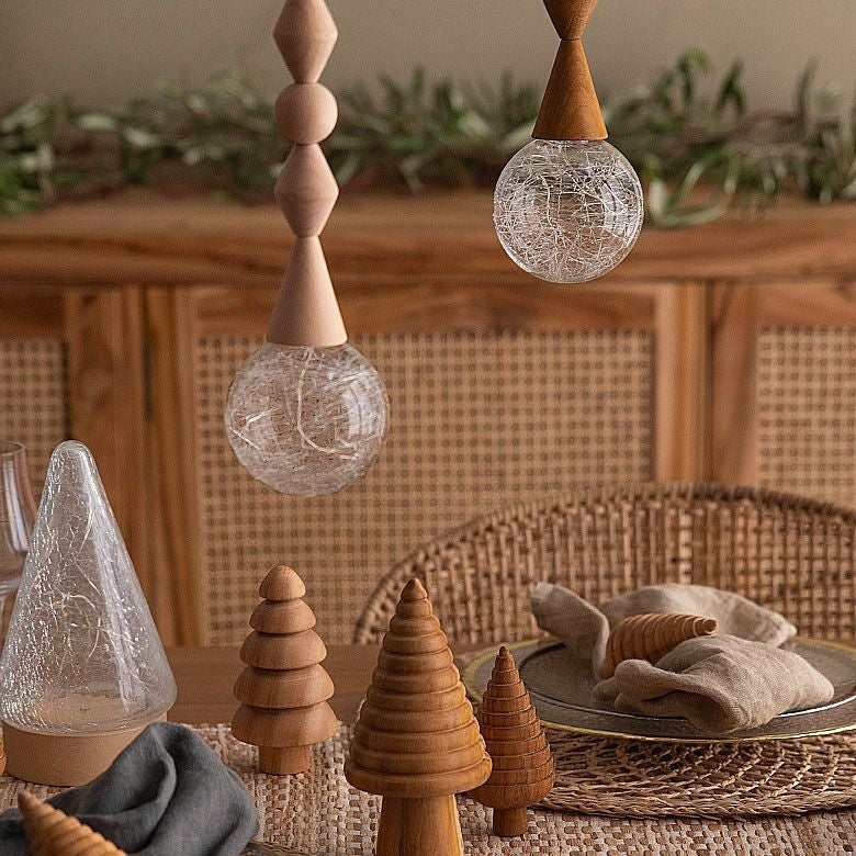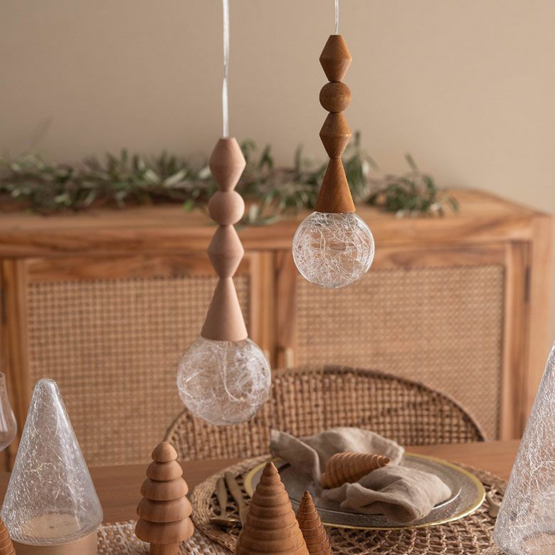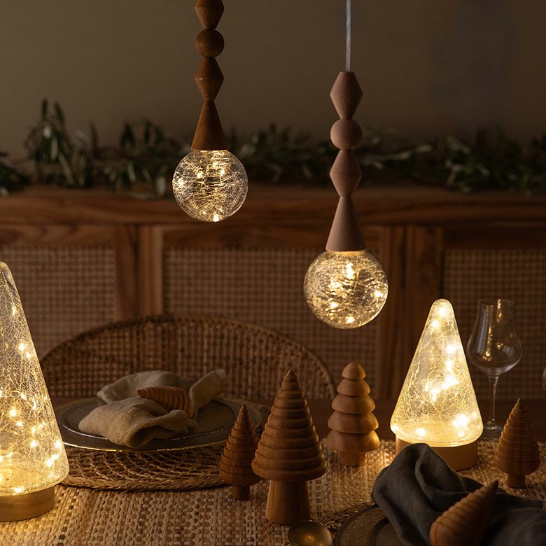ツリーやリースと組み合わせて、クリスマスデコレーションを格上げ。天然ウッド×ガラスが、北欧ナチュラルな雰囲気にぴったり。