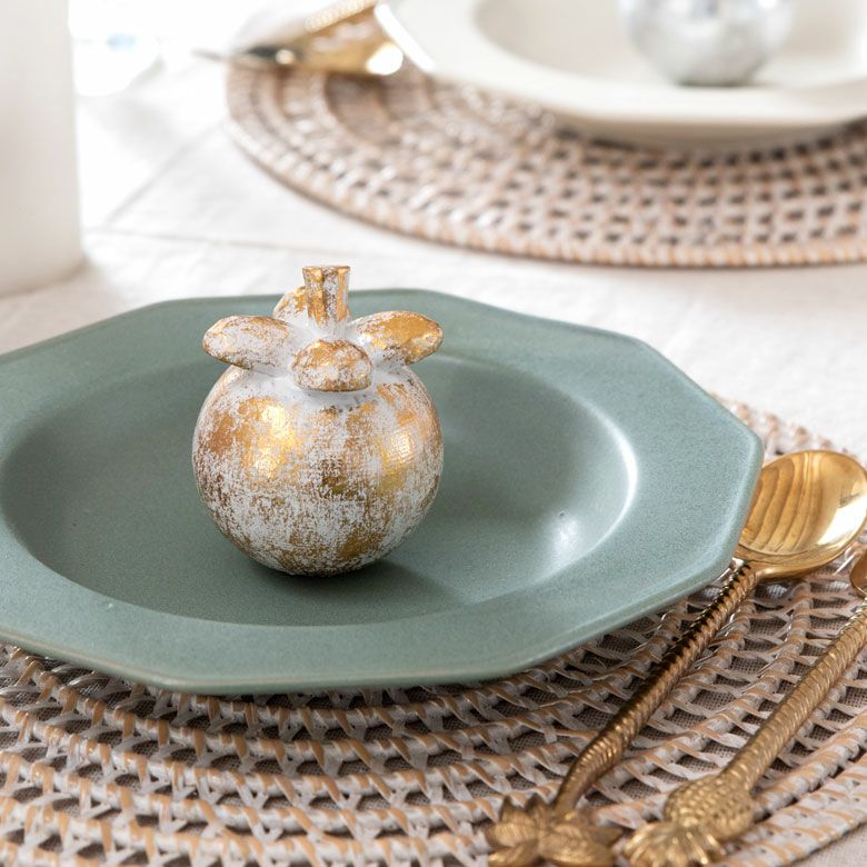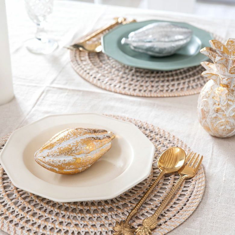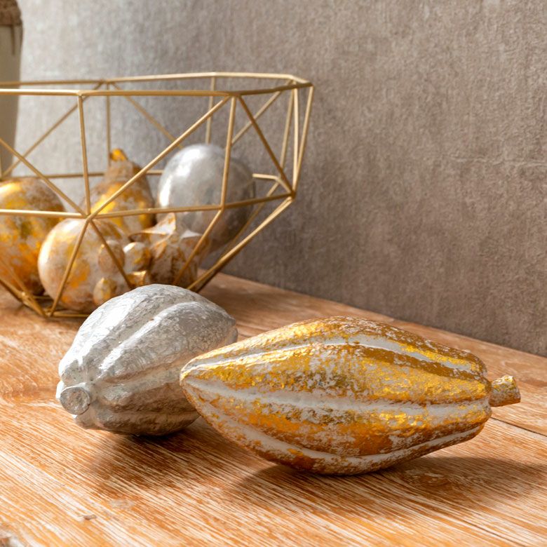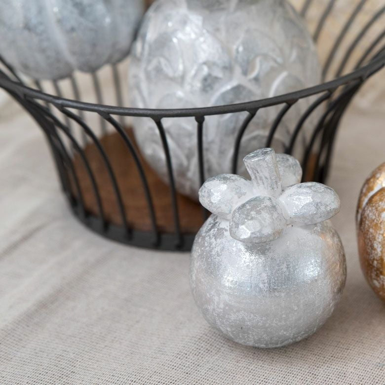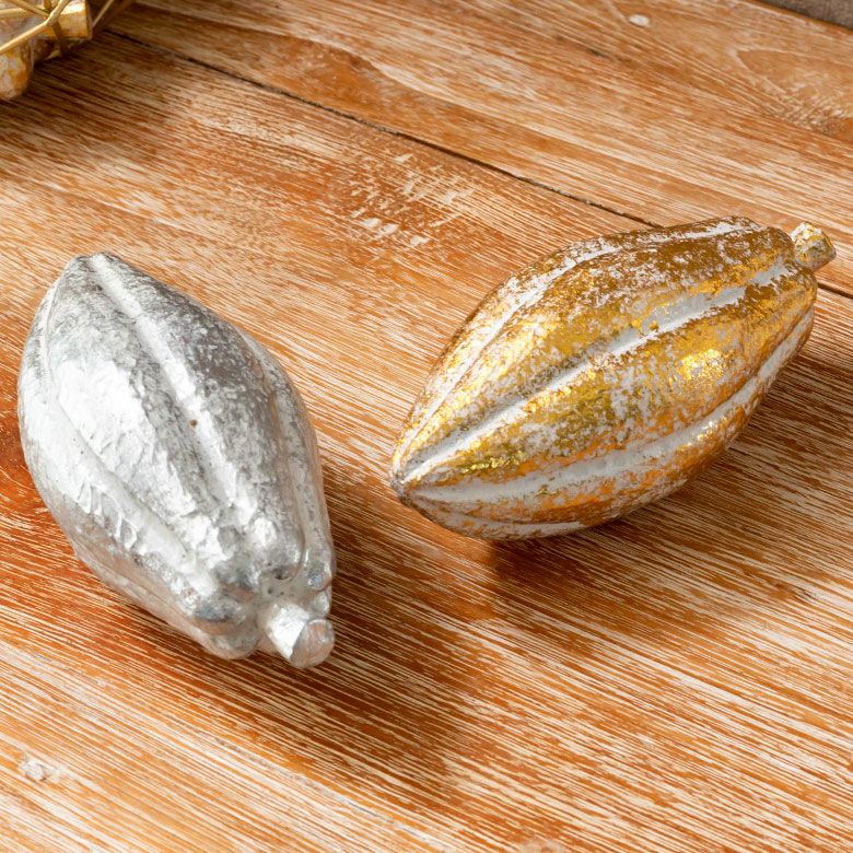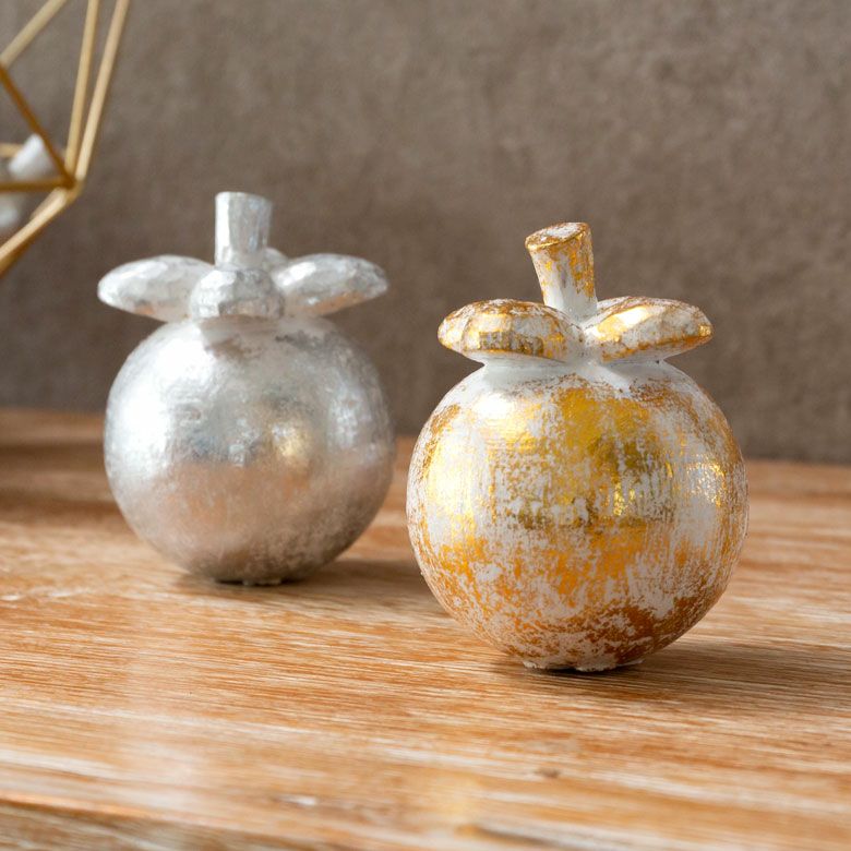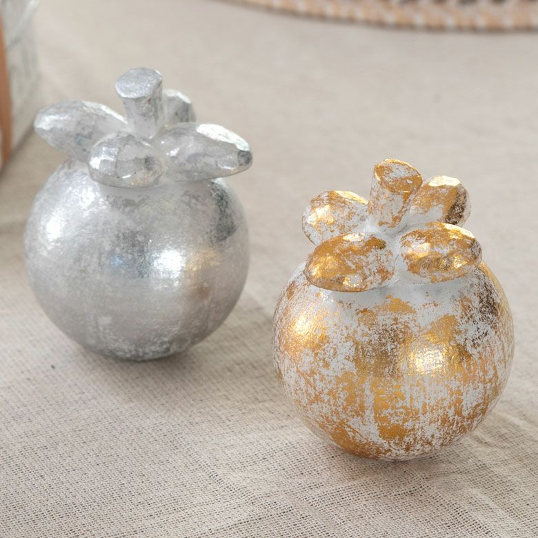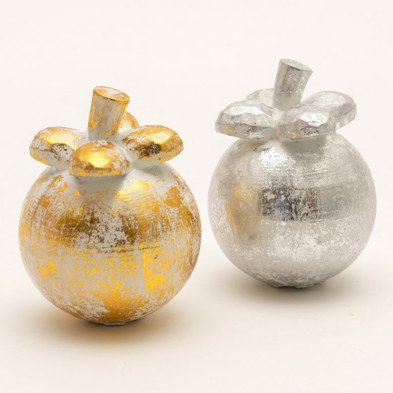 置き物 おしゃれ かわいい 卓上 飾り オブジェ ウッド 木製 木彫り 天然木 マンゴスチン フルーツ 果物 シルバー 銀 ゴールド 金 W 8cm D 8cm H 9cm [13900]【 置物 インドネシア バリ ハロウィン クリスマス ディスプレイ オーナメント インテリア 店舗 リゾート 北欧 南国 アジアン雑貨 アジア 】