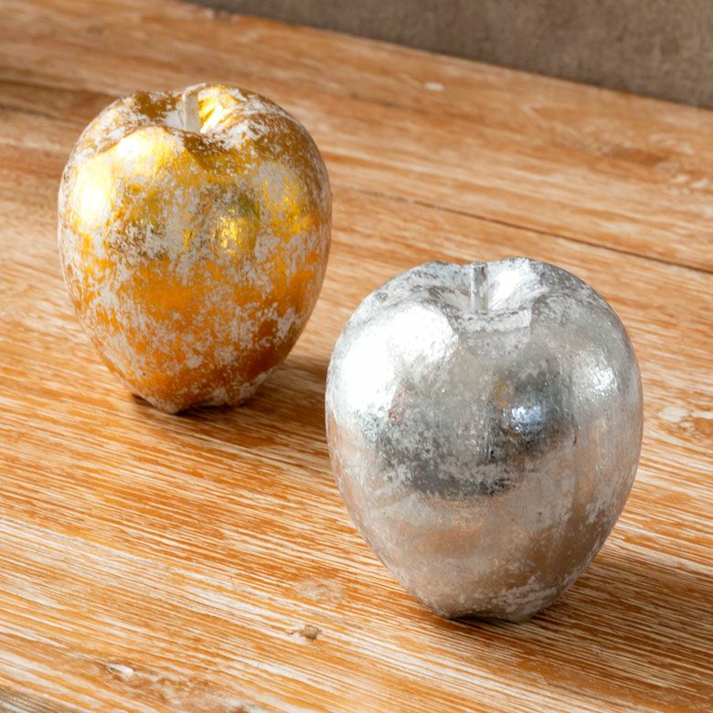置き物 おしゃれ かわいい 卓上 飾り オブジェ ウッド 木製 木彫り 天然木 アップル りんご リンゴ フルーツ 果物 シルバー 銀 ゴールド 金 W 8cm D 8cm H 9cm [13901]【 置物 インドネシア バリ ハロウィン クリスマス ディスプレイ オーナメント インテリア 店舗 リゾート 北欧 南国 アジアン雑貨 アジア 】