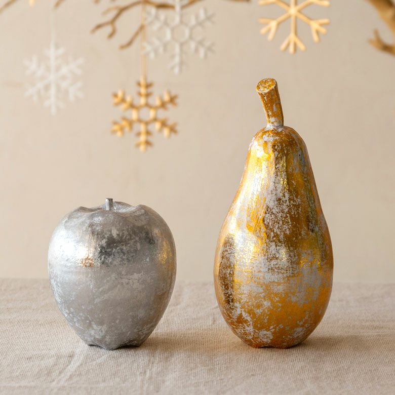 置き物 おしゃれ かわいい 卓上 飾り オブジェ ウッド 木製 木彫り 天然木 ペアー 洋ナシ 洋梨 フルーツ 果物 シルバー 銀 ゴールド 金 W 8cm D 8cm H 16cm [13902]【 置物 インドネシア バリ ハロウィン クリスマス ディスプレイ オーナメント インテリア 店舗 リゾート 北欧 南国 アジアン雑貨 アジア 】