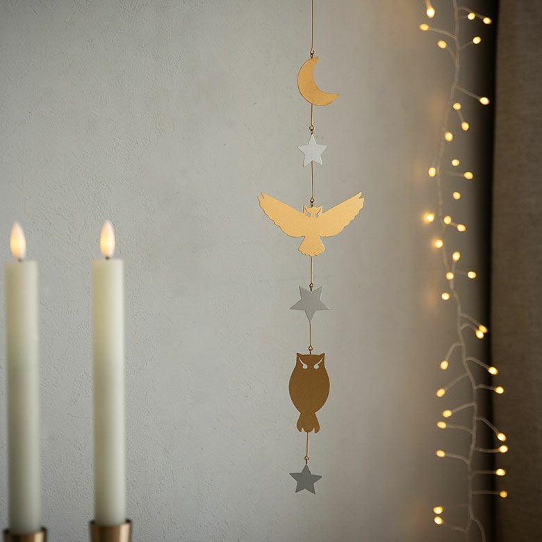 飾り 装飾 イベント フック付き 子供部屋 リビング ダイニング 梟 幸福 幸せ 象徴 モチーフ デコレーション 店舗 屋内 室内 かわいい カフェ レストラン ギフト プレゼント ガーランド フクロウ 星 月 オーナメント ブリキ 約 幅 5cm 高さ 37.5cm クリスマス ハロウィン デコレーション 飾りつけ 吊り下げ クリスマスオーナメント パーティー クリスマスデコレーション おしゃれ 北欧 シンプル インテリア リゾート 雑貨 アジアン [94751]