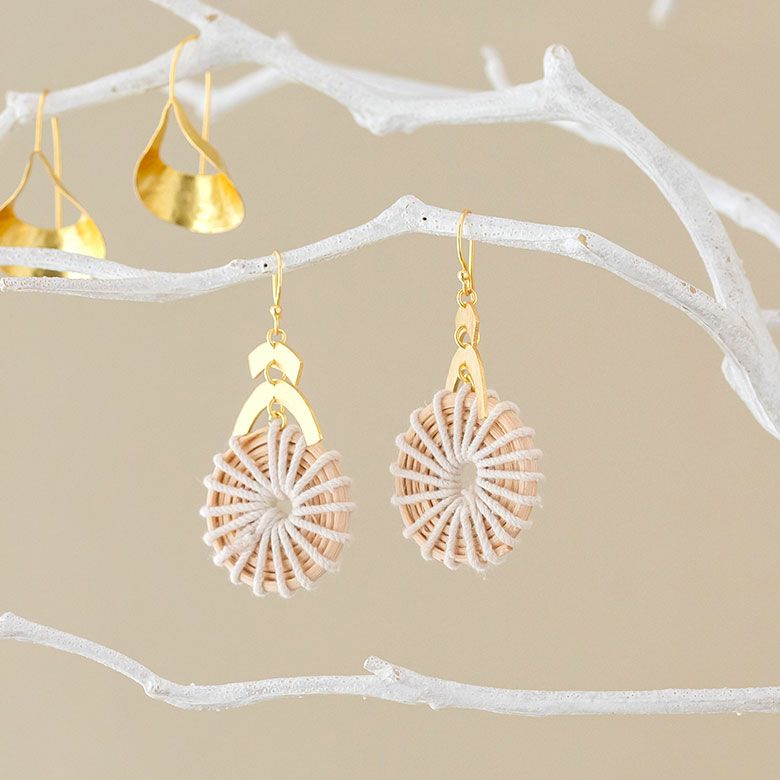 ピアス ギフト 籐 パーティー 女性 シンプル オールシーズン 【メール便対応】 ピアス 真鍮 ラタン ゴールド アクセサリー レディース [34455]【 フックピアス エスニック 揺れる ファッション 大人 大ぶり エレガント カジュアル シック 上品 かわいい おしゃれ 誕生日 祝い 記念日 クリスマス リゾート インド アジアン 雑貨 】