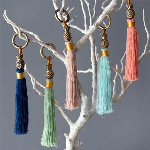 真鍮製のパイナップルとカラフルなタッセルを組み合わせた、