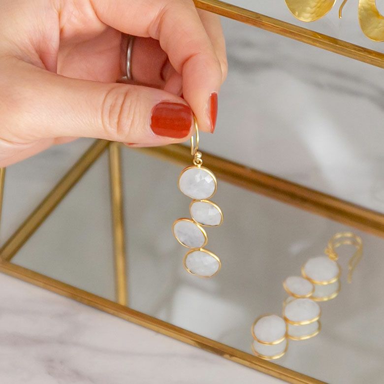 レインボーストーンをあしらったピアス。