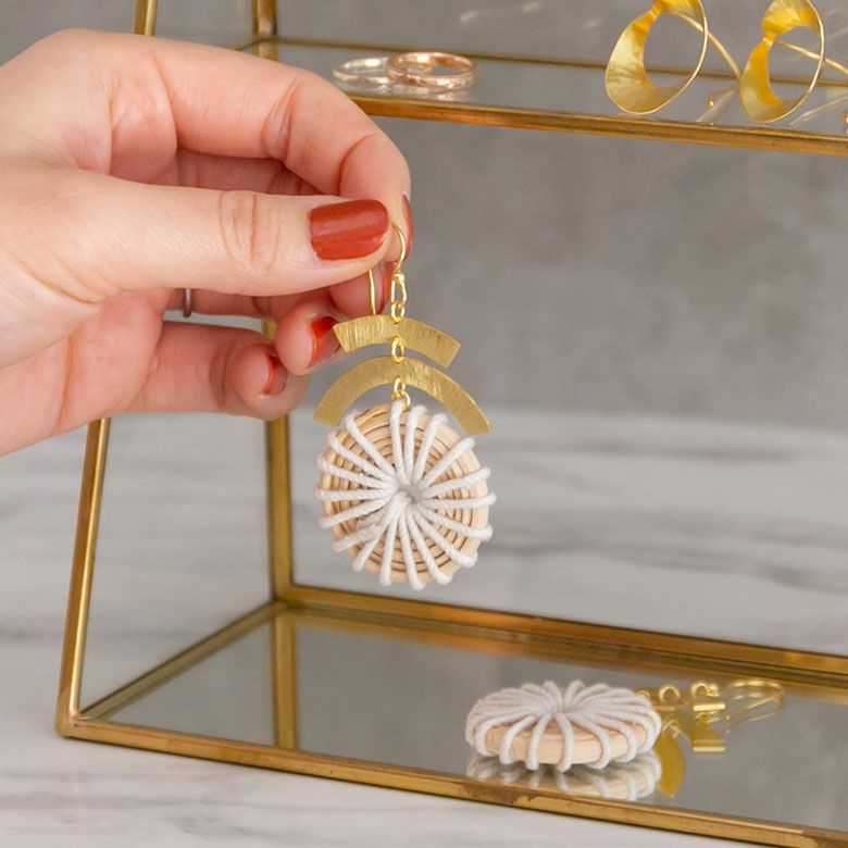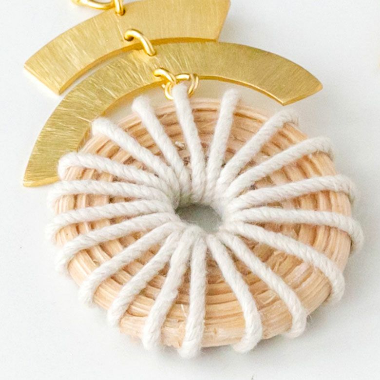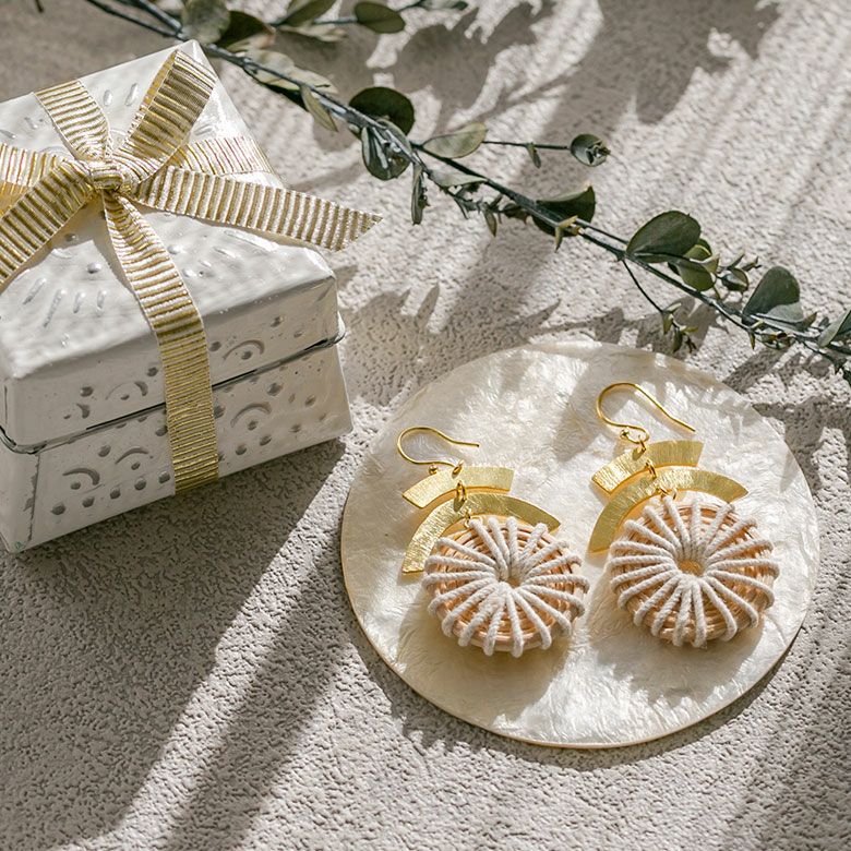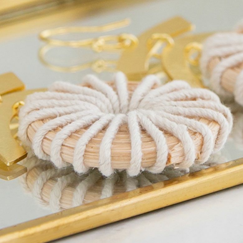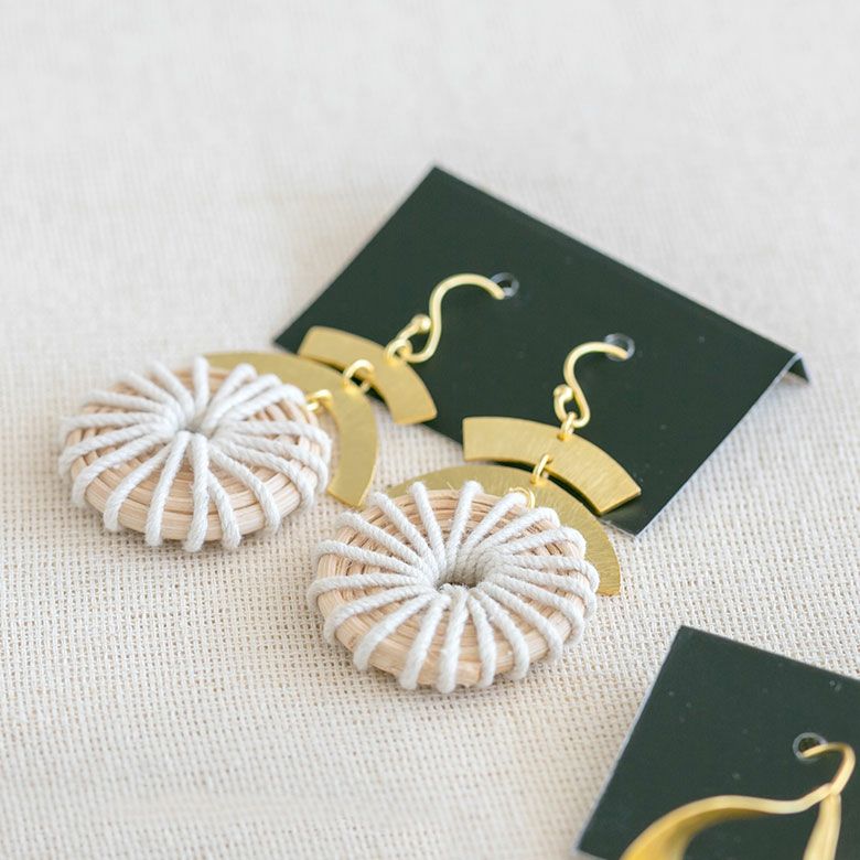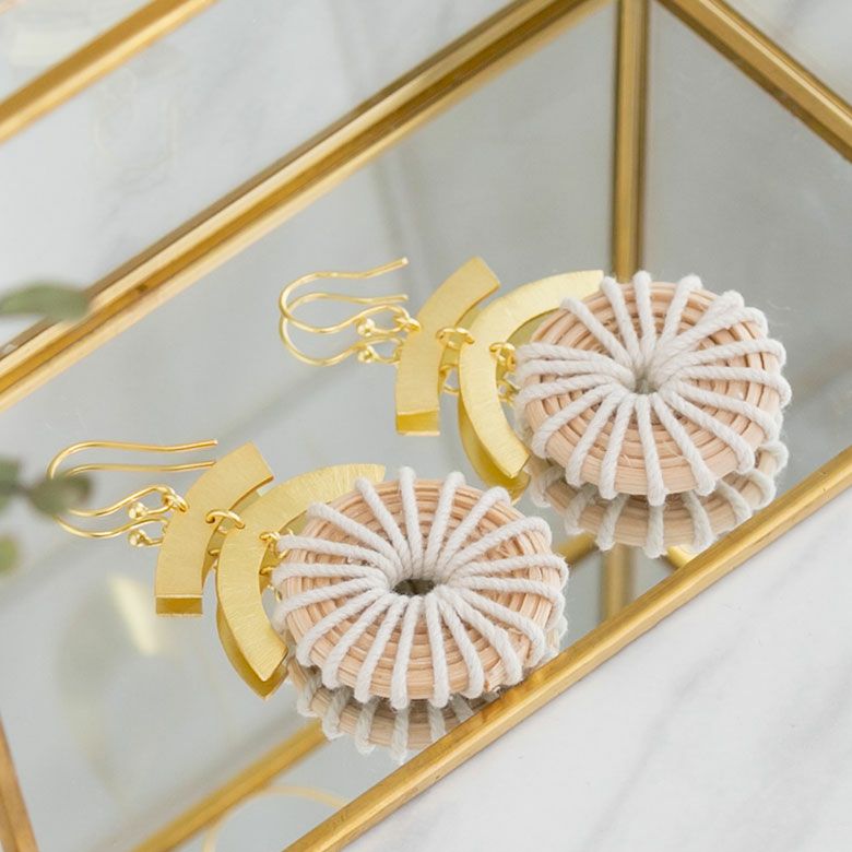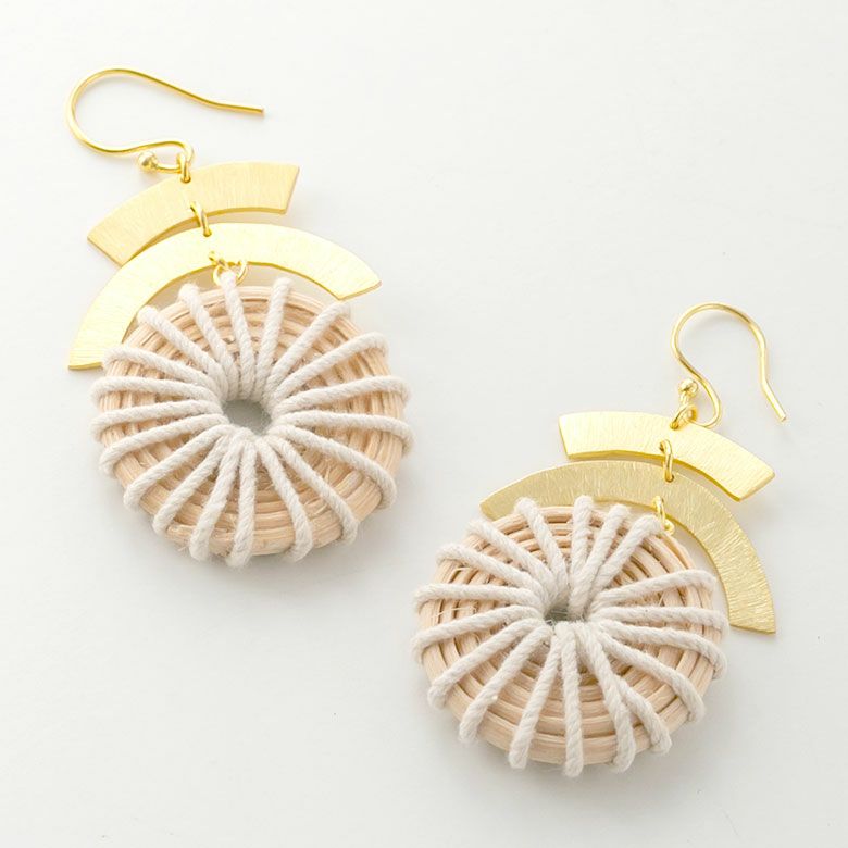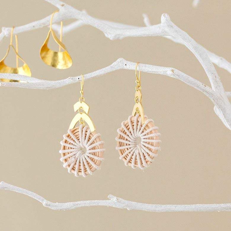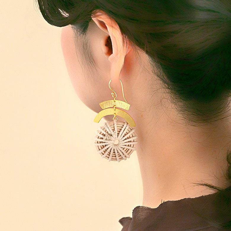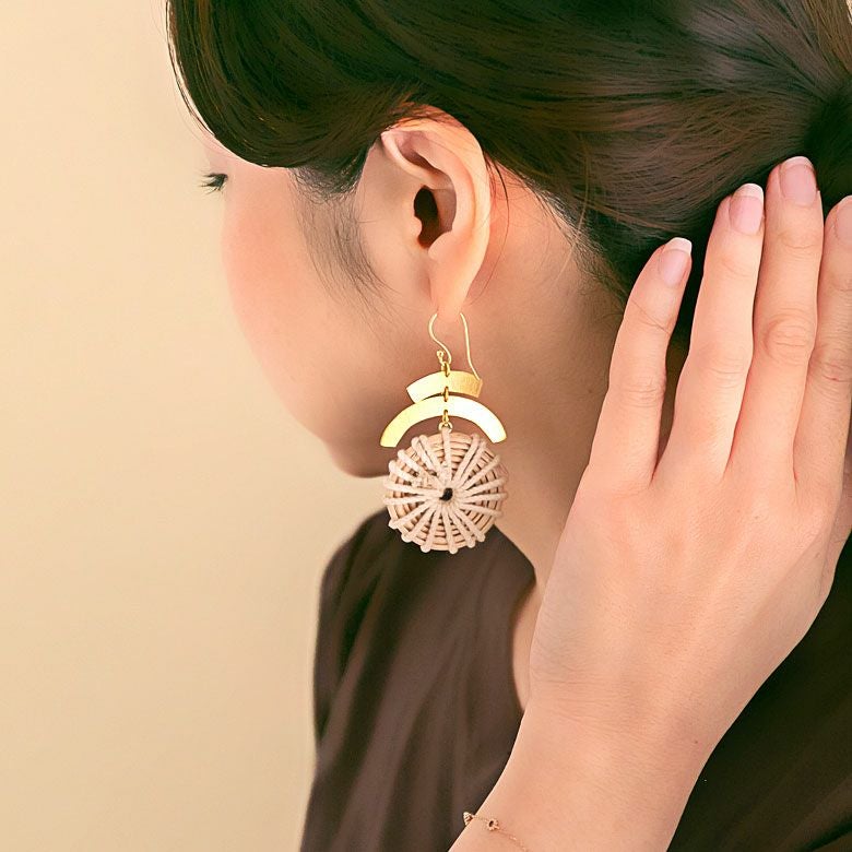 天然素材であるラタンを使用したカジュアルスタイルにぴったりのピアス。