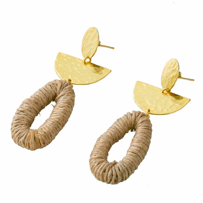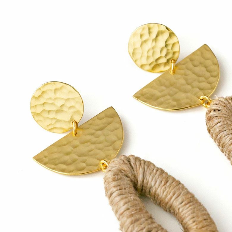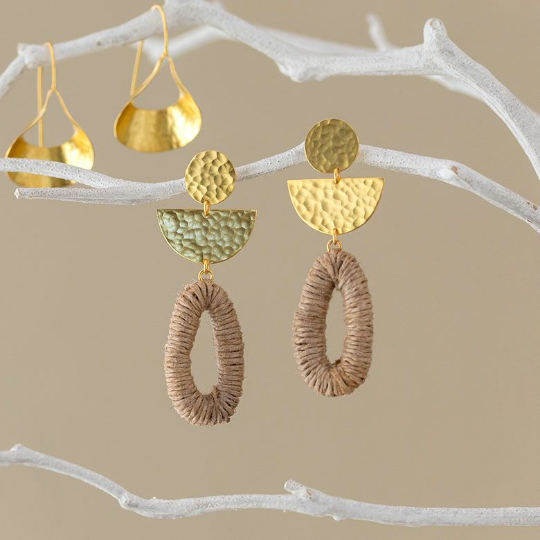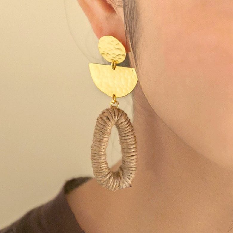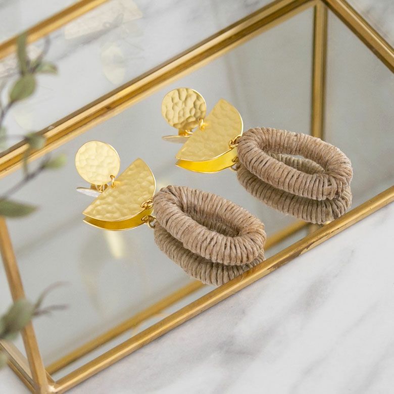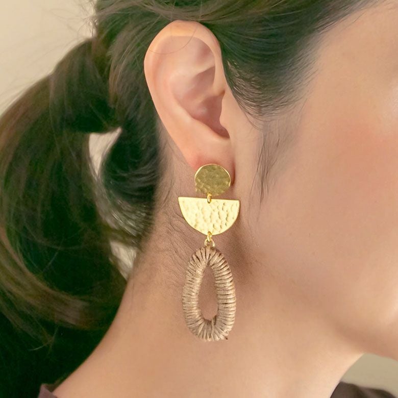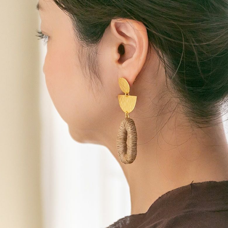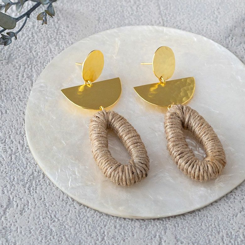 天然素材である麻を使用したカジュアルスタイルにぴったりのピアス。
