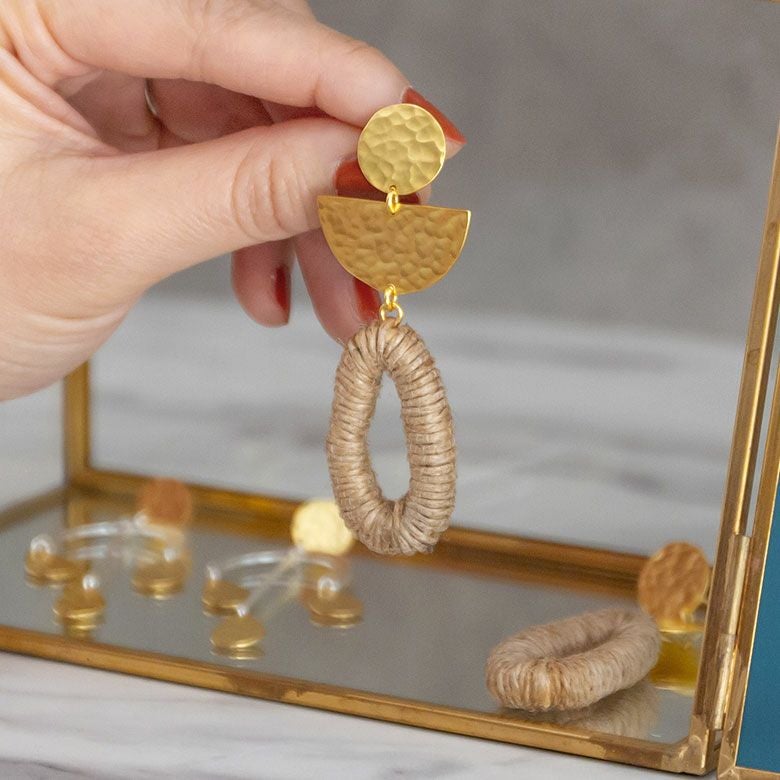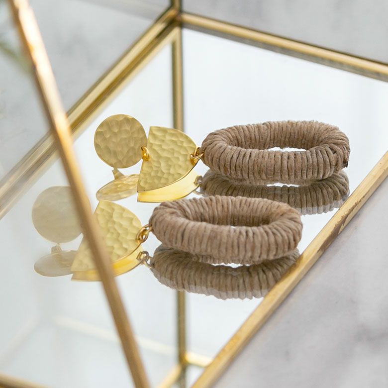 上品な真鍮のゴールドとの組み合わせで耳元が華やかに。