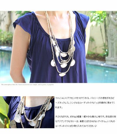 ファッションにアクセントをつけてくれる、バリニーズの感性が光るビーズネックレス。シンプルなコーディネイトもぐっと印象的に見せてくれます。