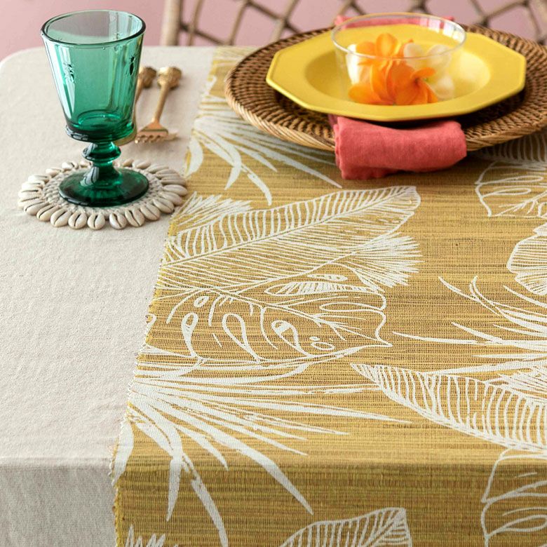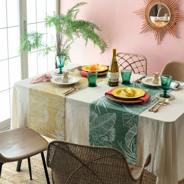 いつもの食卓をぐっと華やかにしてくれる、リーフ柄のテーブルランナー。