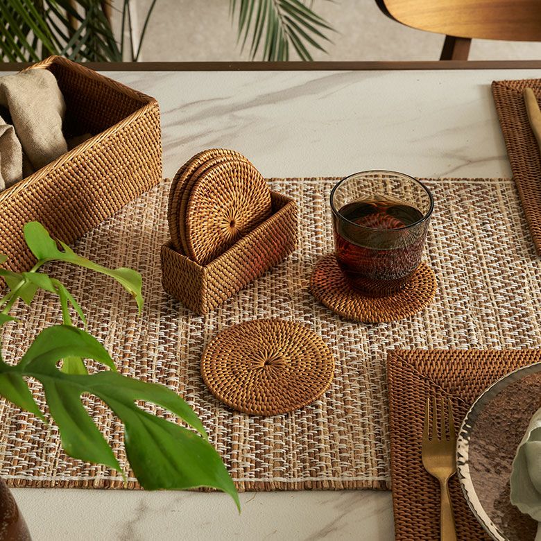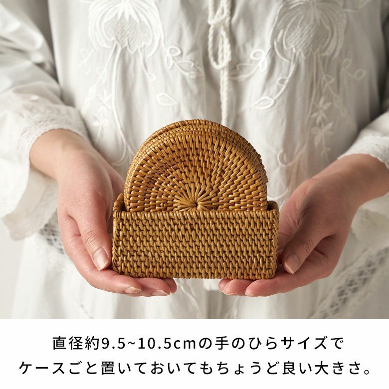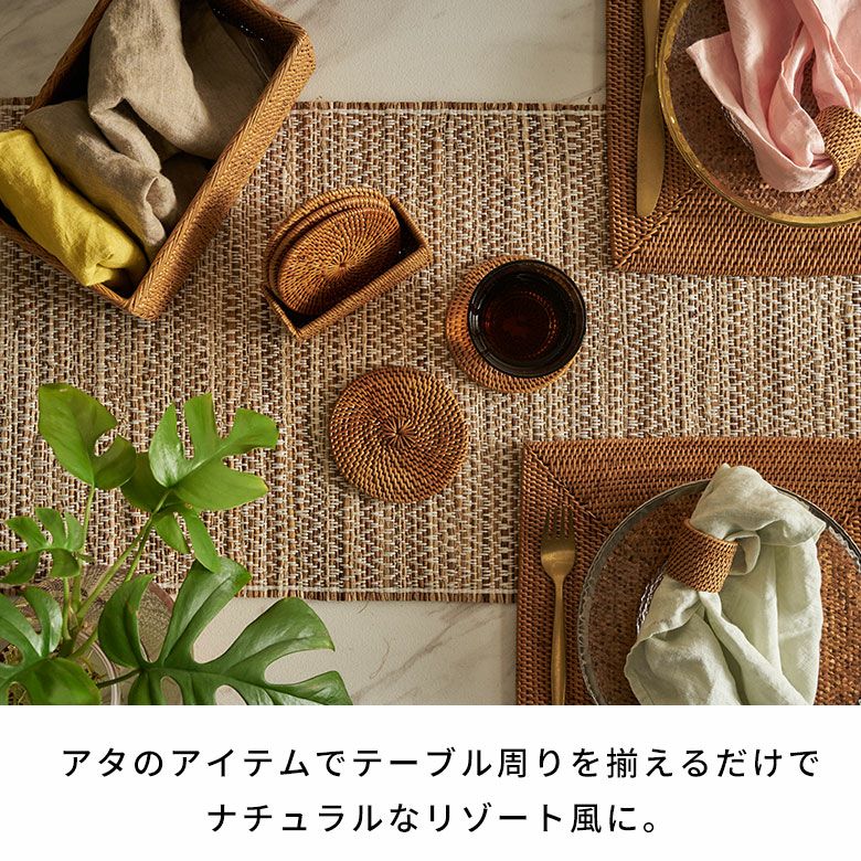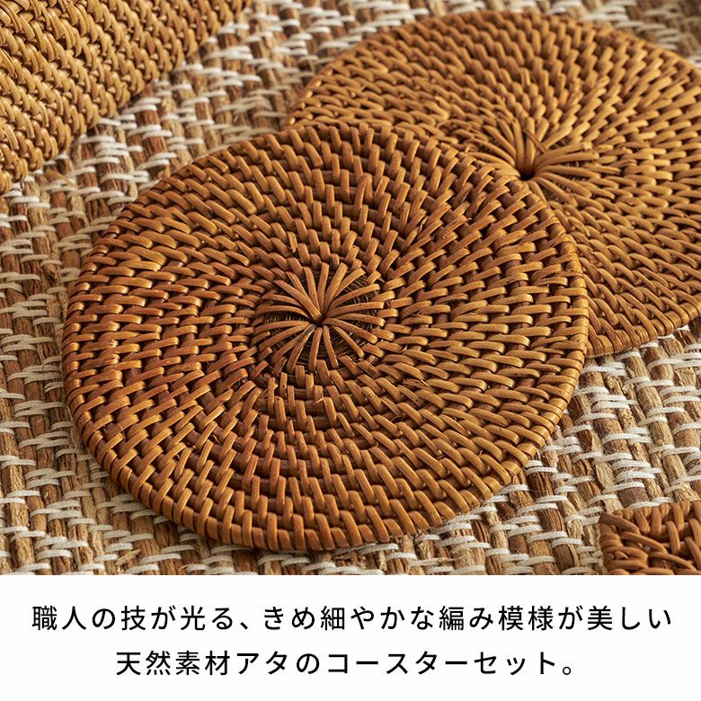 インドネシアに自生するアタと呼ばれるツタを、熟練の職人がひとつひとつ丁寧に編み上げたコースター。