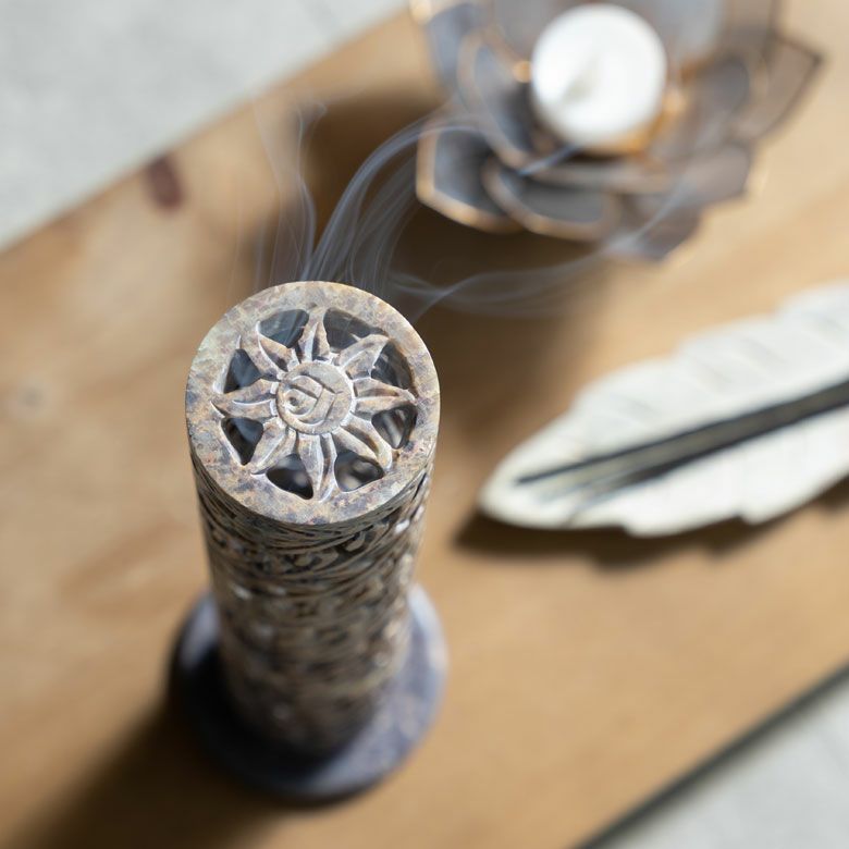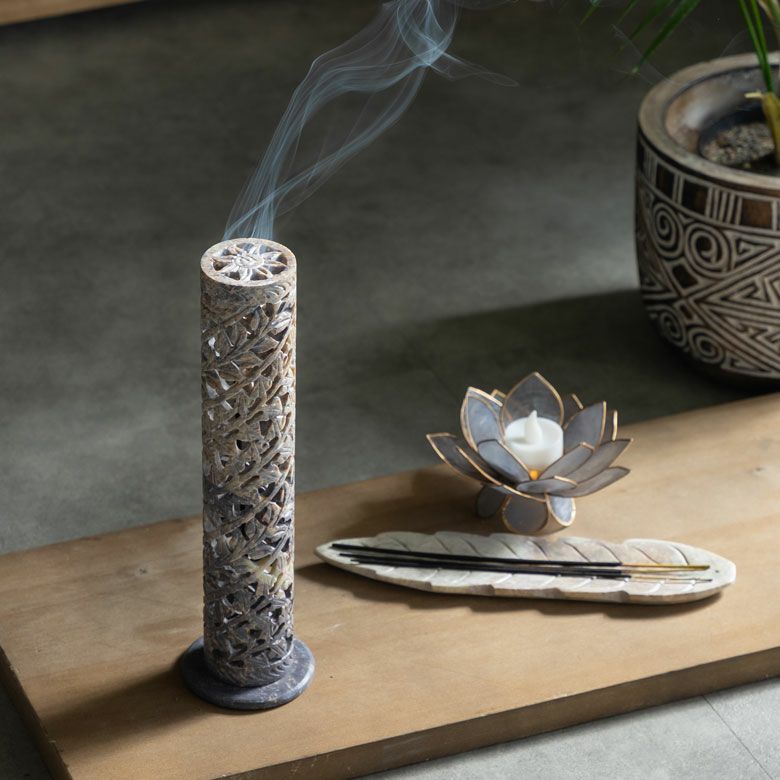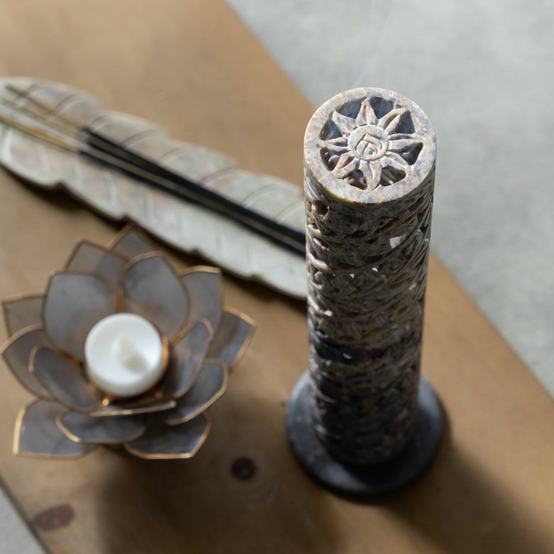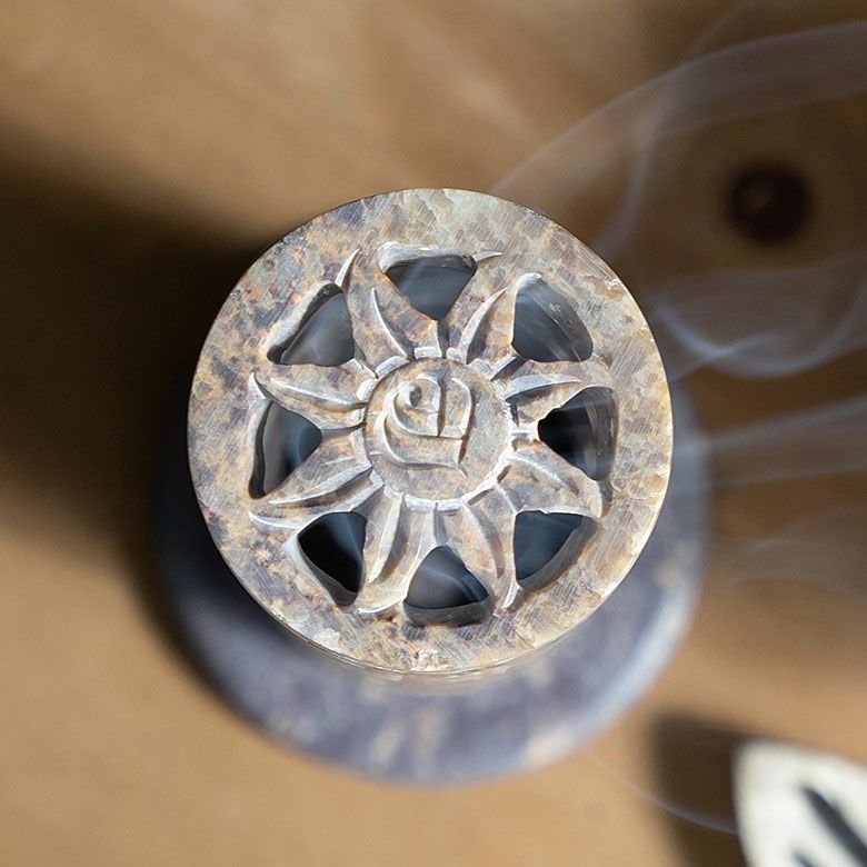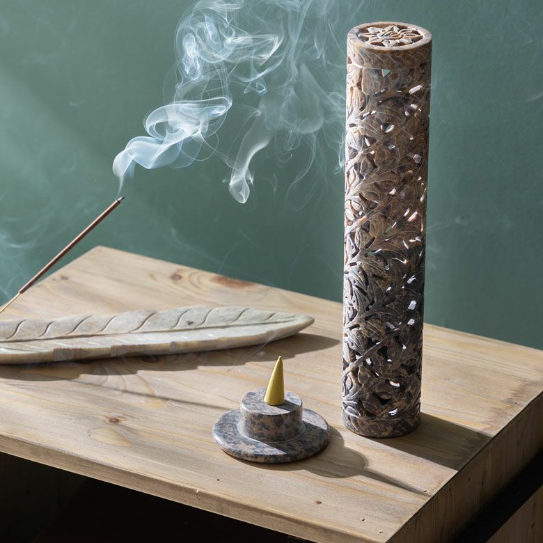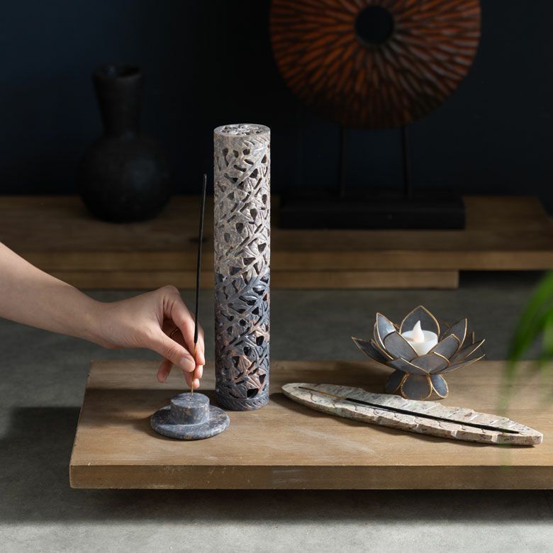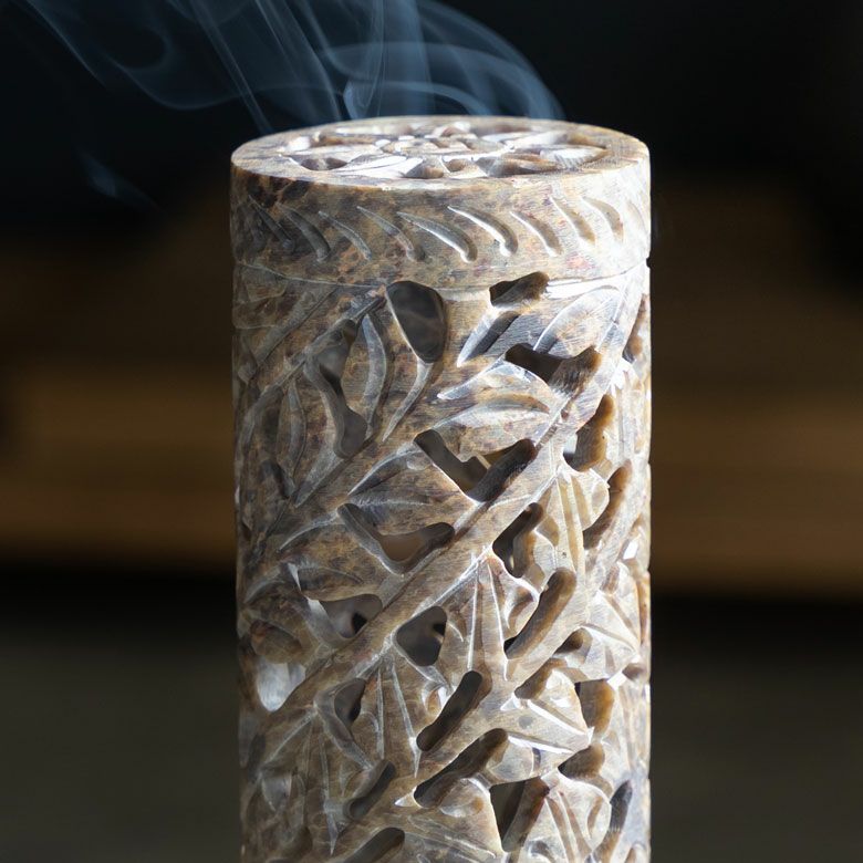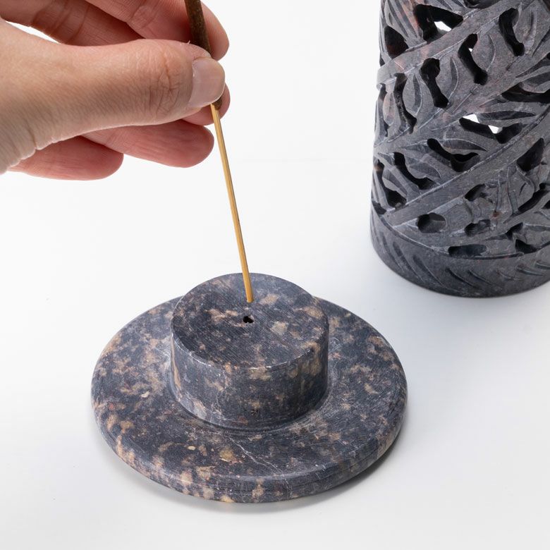 インド特産のソープストーンを使用し、透かし状に彫り上げられたお香立ては
