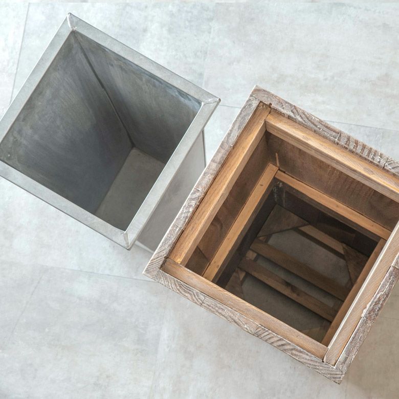 ブリキのインナー付きで水濡れも安心