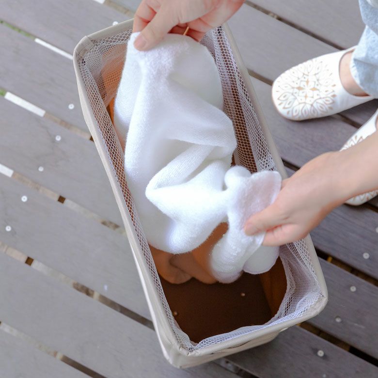 取り出し口には、巾着式メッシュカバー付き。 |