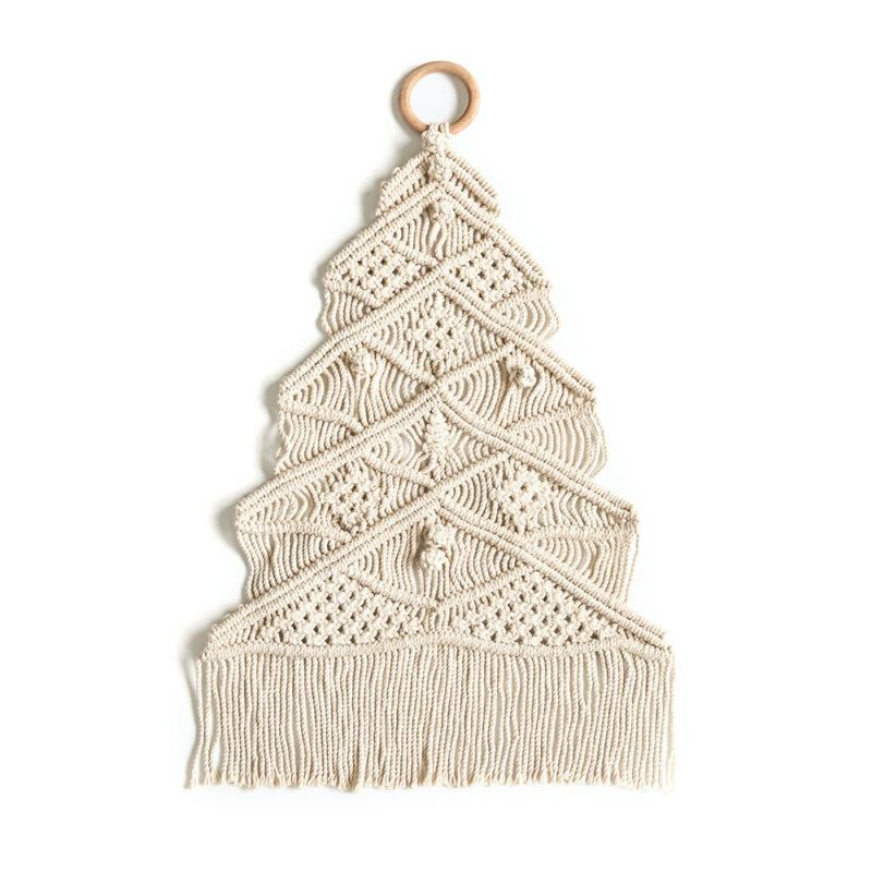 優しい色合いと、美しいマクラメ編みが特徴的なツリー型タペストリー。