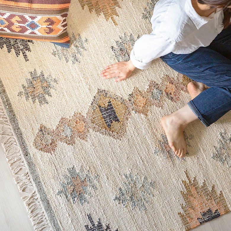 織り目の表情に趣があり、やさしい風合いのデザインラグ。