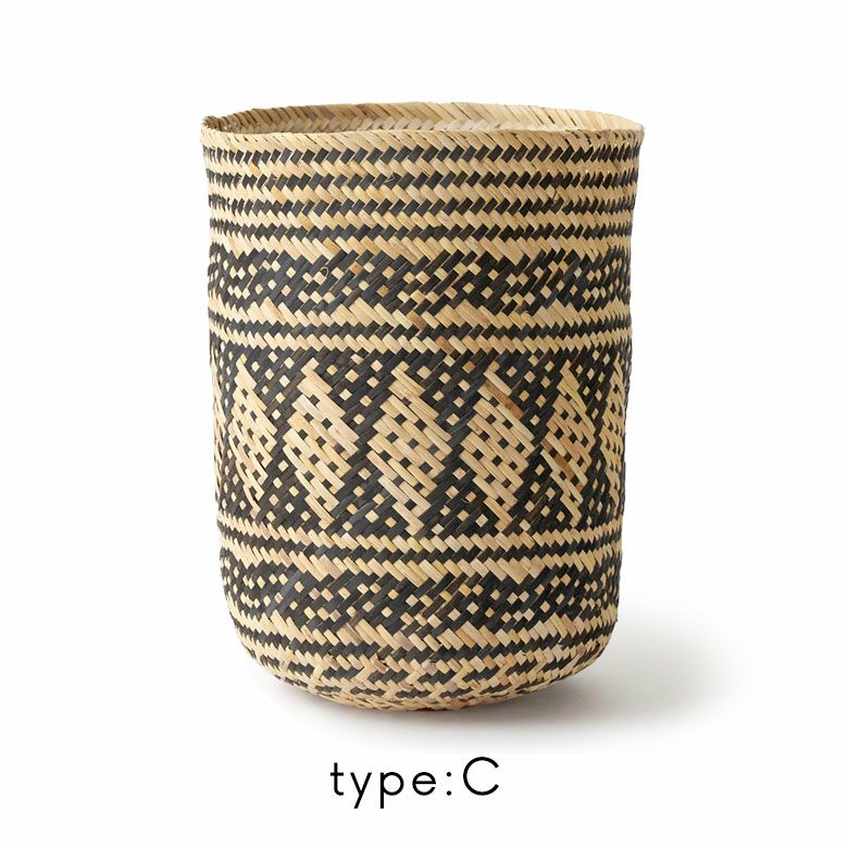 エキゾチックな魅力を感じる印象的な模様で、インテリア性の高いバスケット。