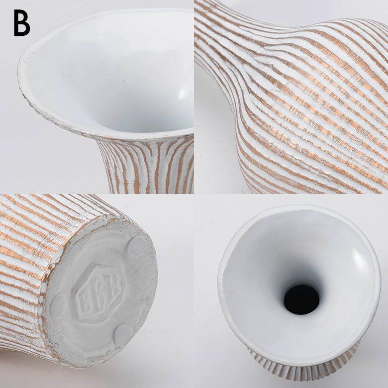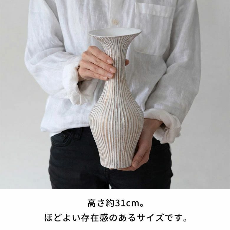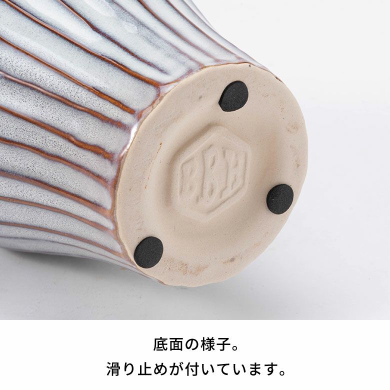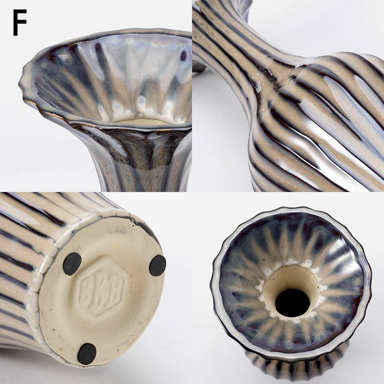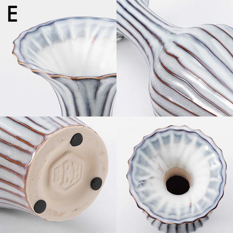 胴の丸みとすっと細く伸びる首元のバランスが美しい、セラミック製フラワーベース。縦に流れるリブ模様や、釉薬の重なりの表情などが楽しめる全6柄展開。シンプルなシルエットでありながら個性のある佇まいです。ドライフラワーや造花を飾るのはもちろん、水入れ可能なので生花のある暮らしも楽しめます。