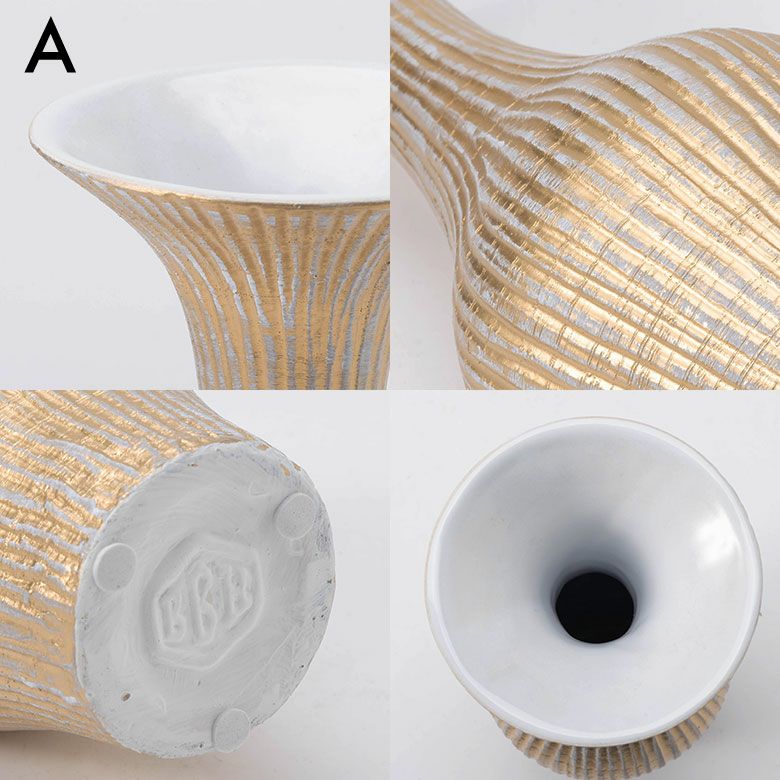 【A】全体にゴールドカラーをあしらった存在感のあるアイテム。土本来のざらりとした質感を活かすことで、煌びやかさの中にも落ち着きを感じます。