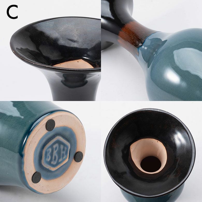 【C】ブルー、ブラウン、ブラックの幻想的なグラデーションが印象的。釉薬の流れるような質感がみずみずしさを演出します。艶~セミマットな質感です。