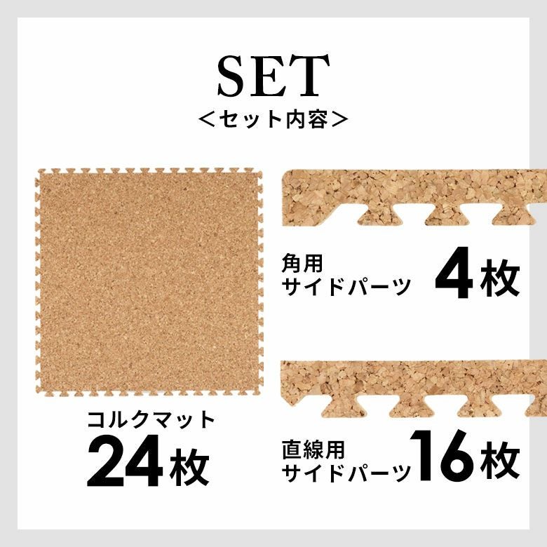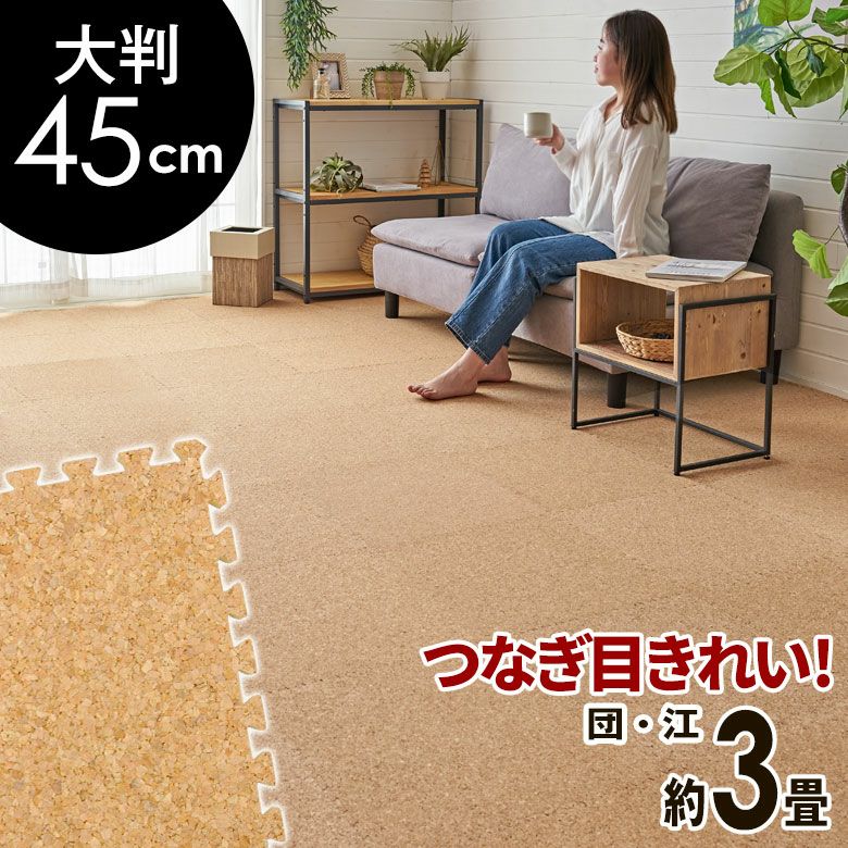 国内検査済み パズルマット 床 傷 キズ 防止 防音 保湿 弾力 遮熱 耐久 水拭き水洗い 可 パズル タイル オールシーズン 軽量 簡単 DIY リフォーム 賃貸 ベビーマット コルクタイル 高品質 天然 コルクマット 大粒 大判 45cm 8mm厚 24枚 セット 江戸間 団地間 3畳 約 265cm×177cm ジョイントマット コルク カーペット マット ジョイント コルクカーペット プレイマット 赤ちゃんマット 防音マット おしゃれ 床材 クオリアム アジアン [twcm-45-024p]