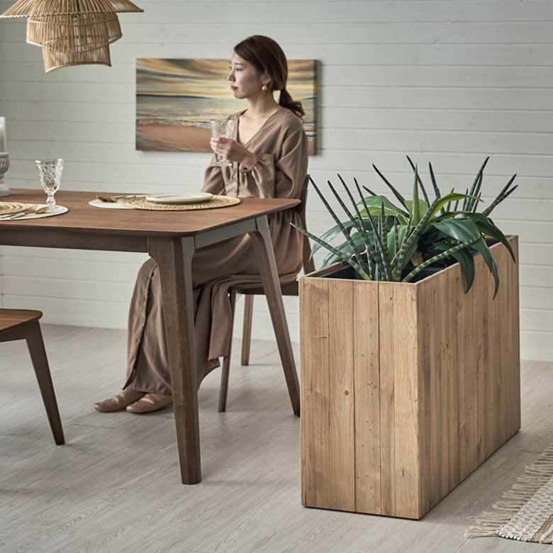 古材ならではのこなれた雰囲気が、観葉植物をぐっと惹きたてます。