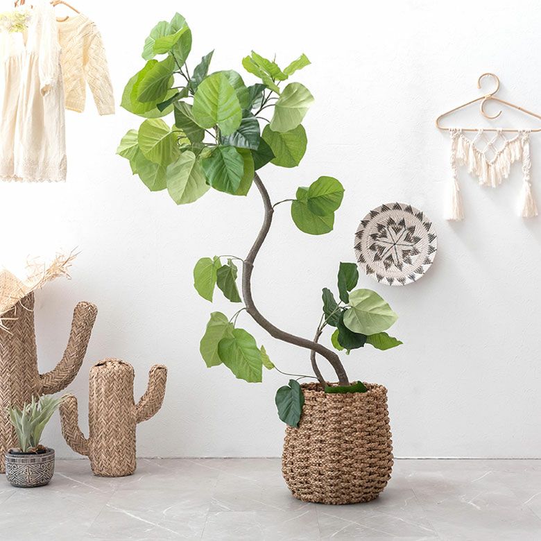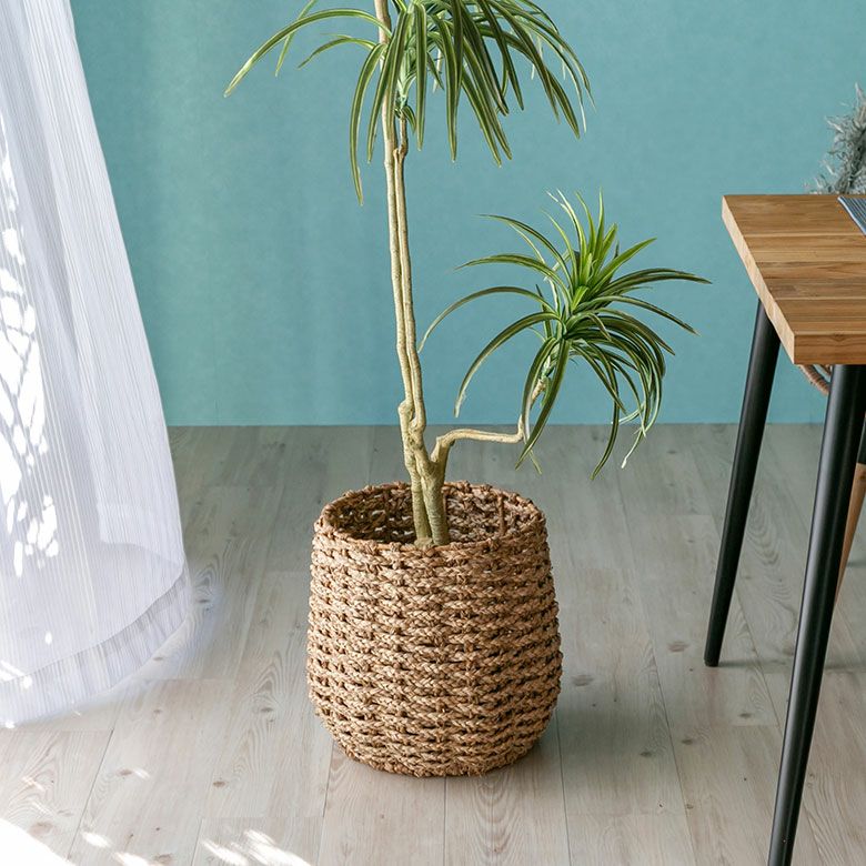 シーグラス(天然素材)を編んで作られたプランターカバーは、