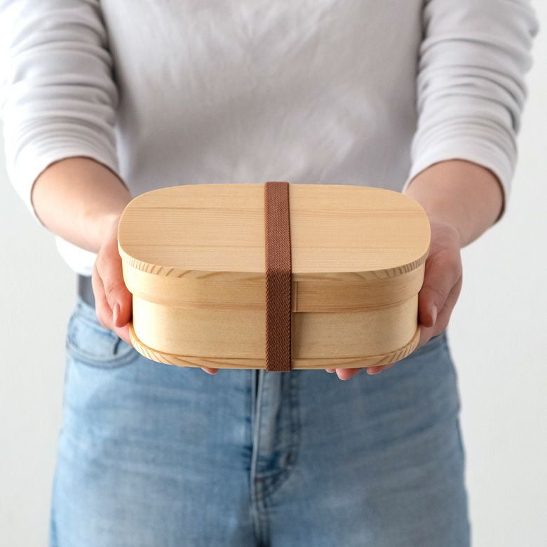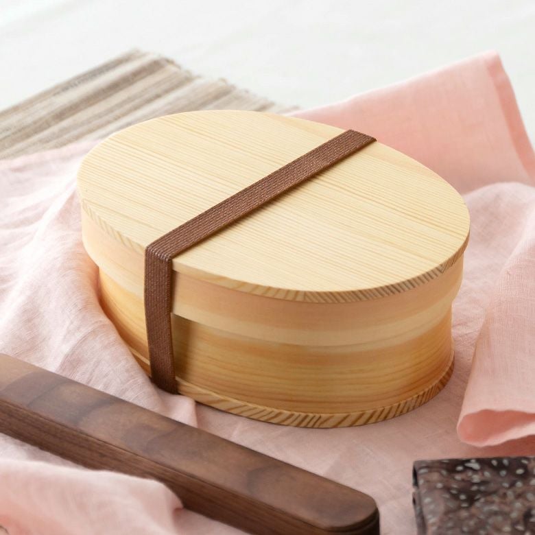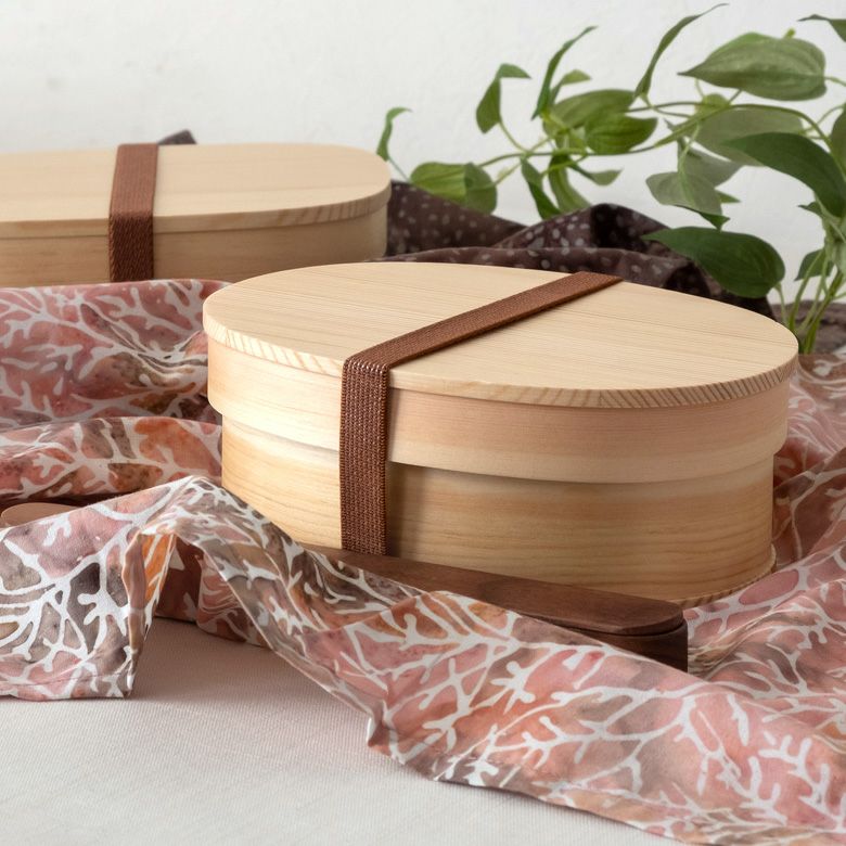 日本の伝統工芸、曲げわっぱのお弁当箱。
