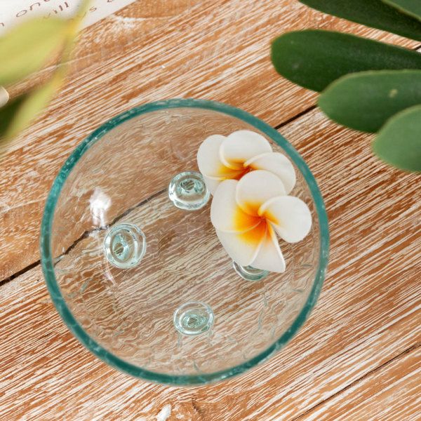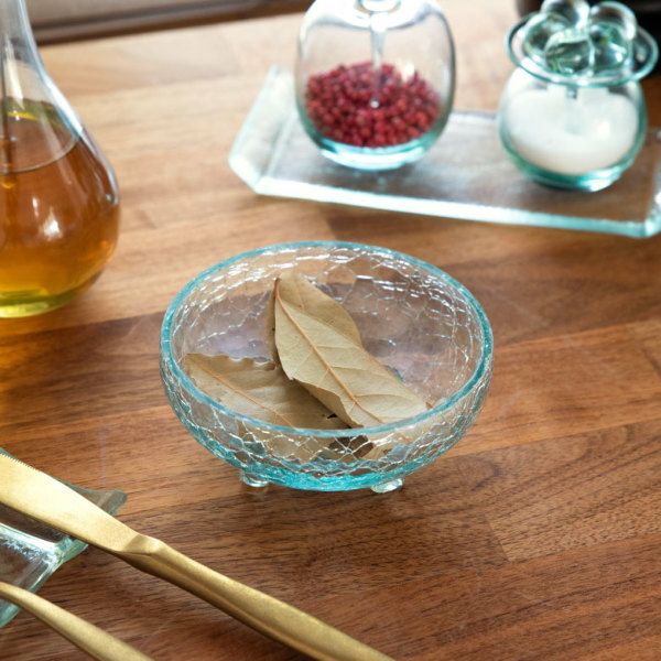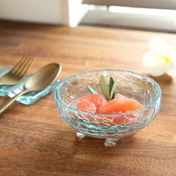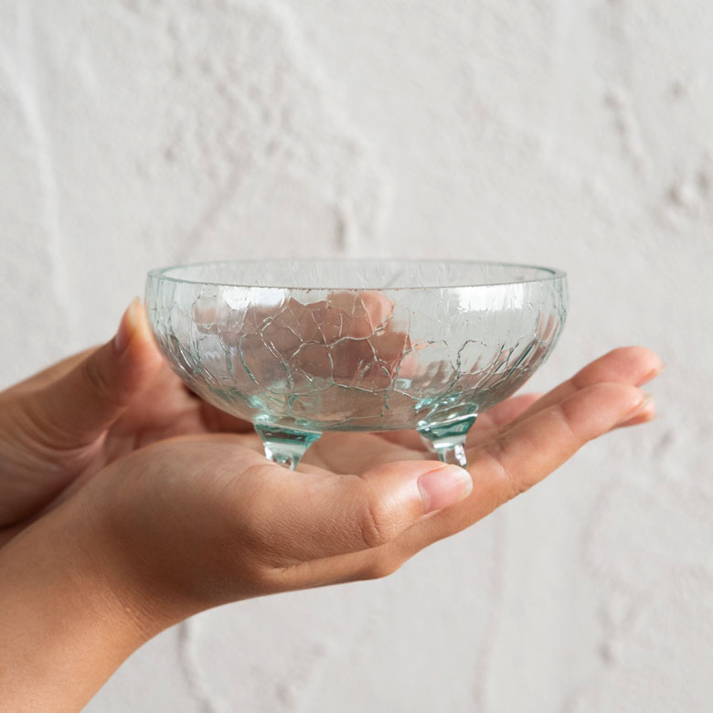 ガラスの爽やかな色合いと、4つの脚がとても可愛く優しい印象のボウル。