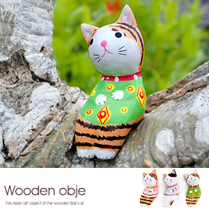 ネコなのにお座りする不思議なバリネコのオブジェ。バリ島の職人が独特のセンスでデザインしたオブジェです。ひとつひとつ手彫りで形作られ、ペイントされた手間ひまのかかったアイテム。木彫りならではの温かさと、ハンドメイドの素朴さがよりネコの可愛さを惹きたてています。