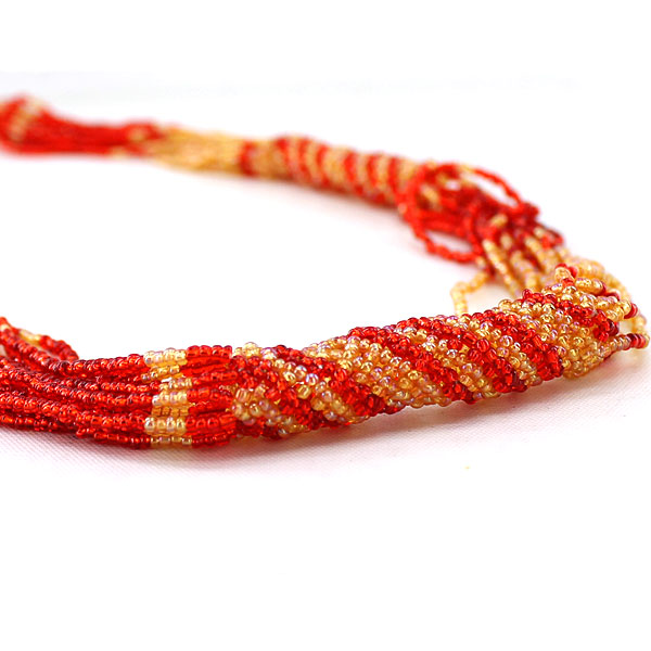 鮮やかな赤いビーズで華やかさもアップします。また、シンプルなコーディネートのアクセントアイテムとして、キレイめスタイルの時にも◎!