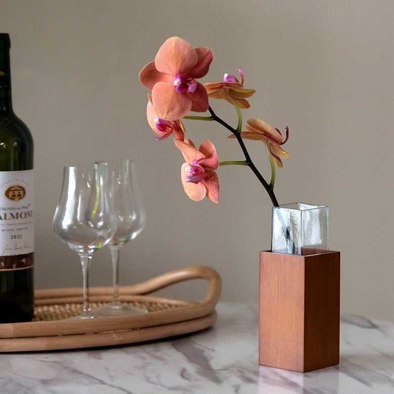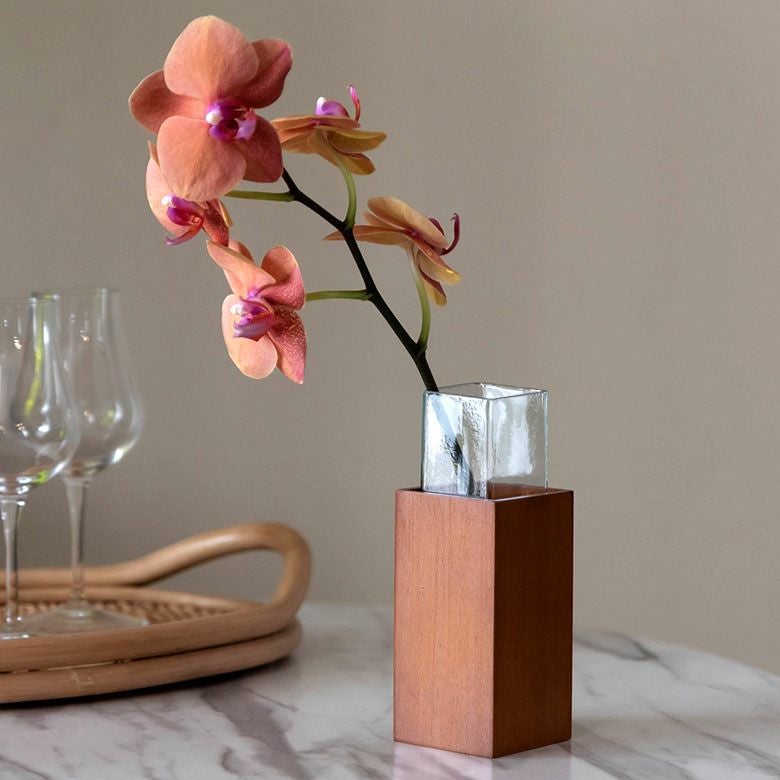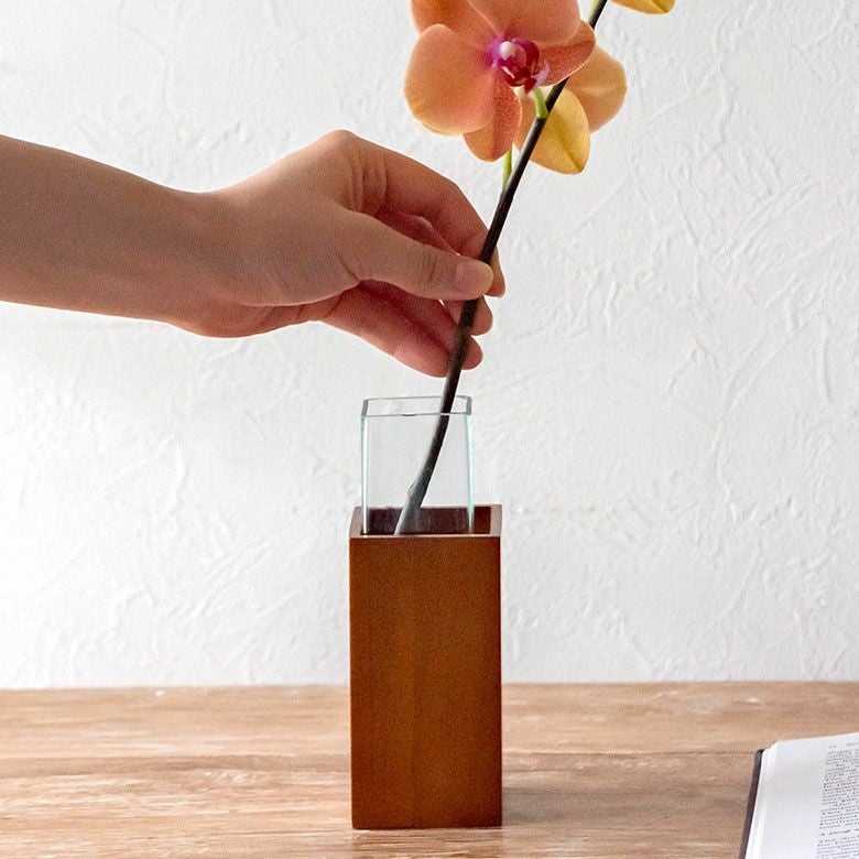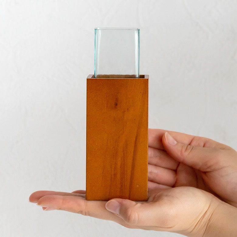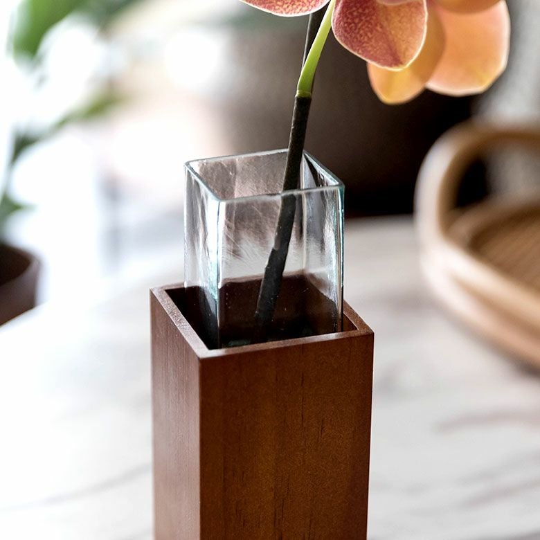 ガラスとウッドの一輪挿し