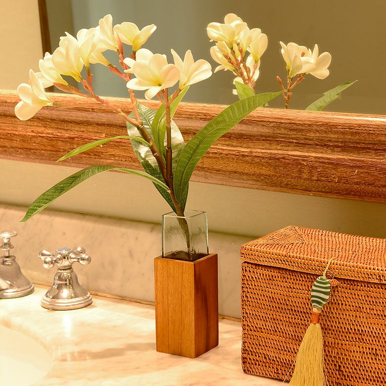 ガラス部分には水を入れて生花を、ウッド部分には造花を入れて飾っても♪