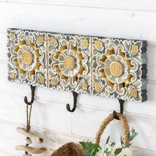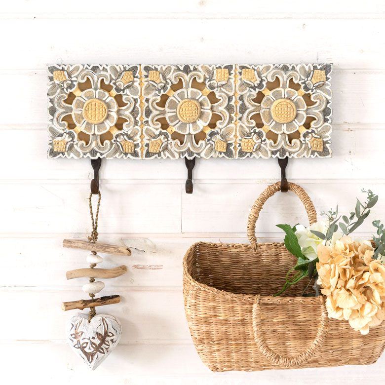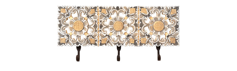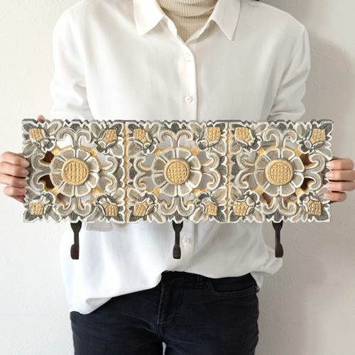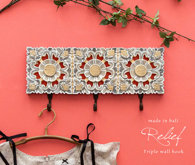 「ウッドレリーフ」の3連壁掛けフック。