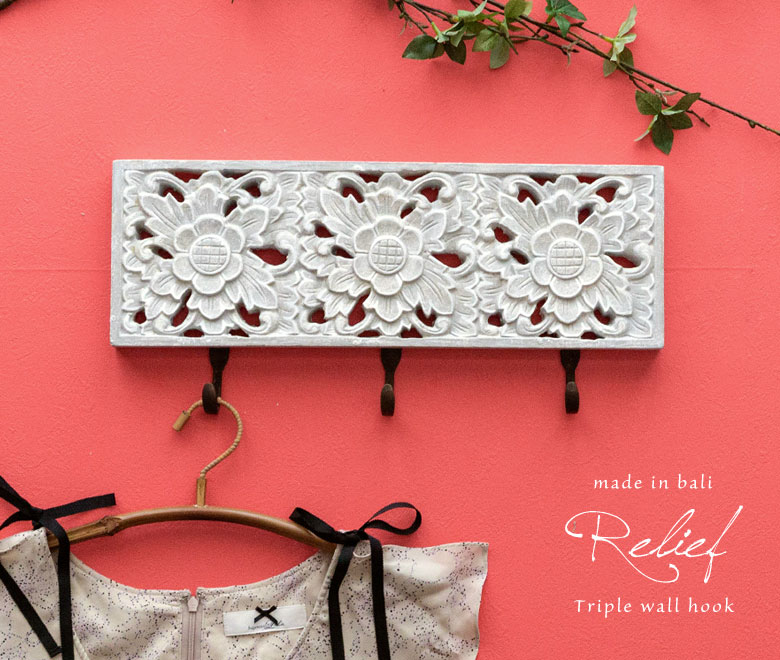 「ウッドレリーフ」の3連壁掛けフック。