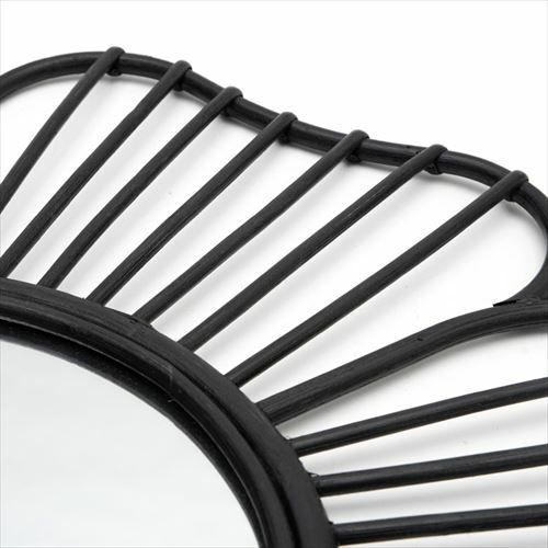 ラタン素材でぐるりと縁取りをした壁掛けミラー。