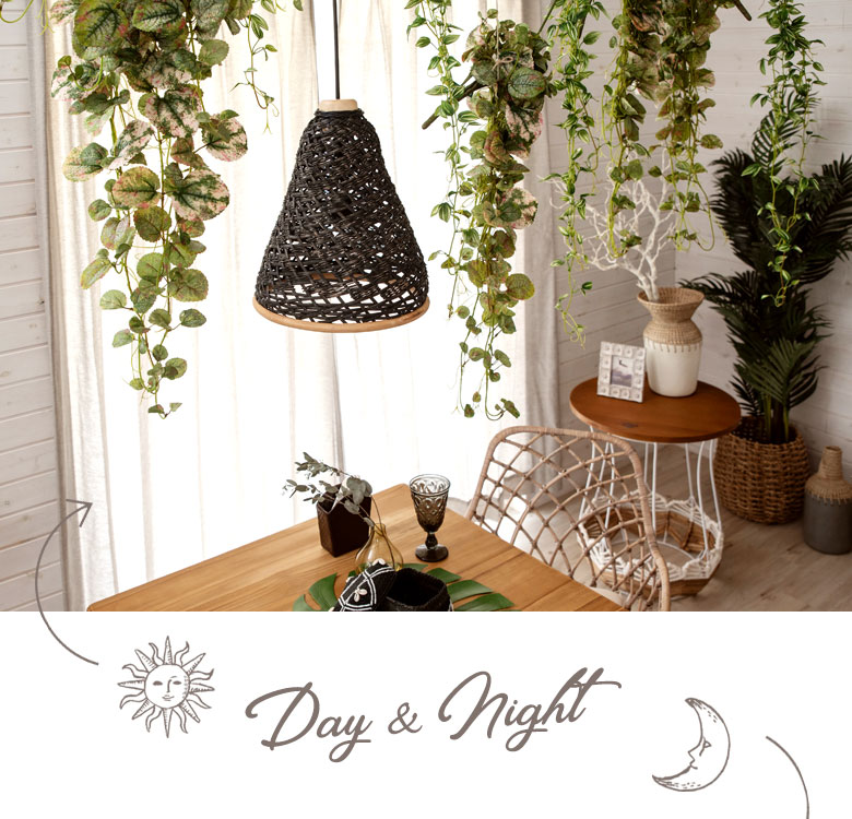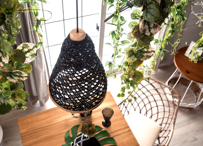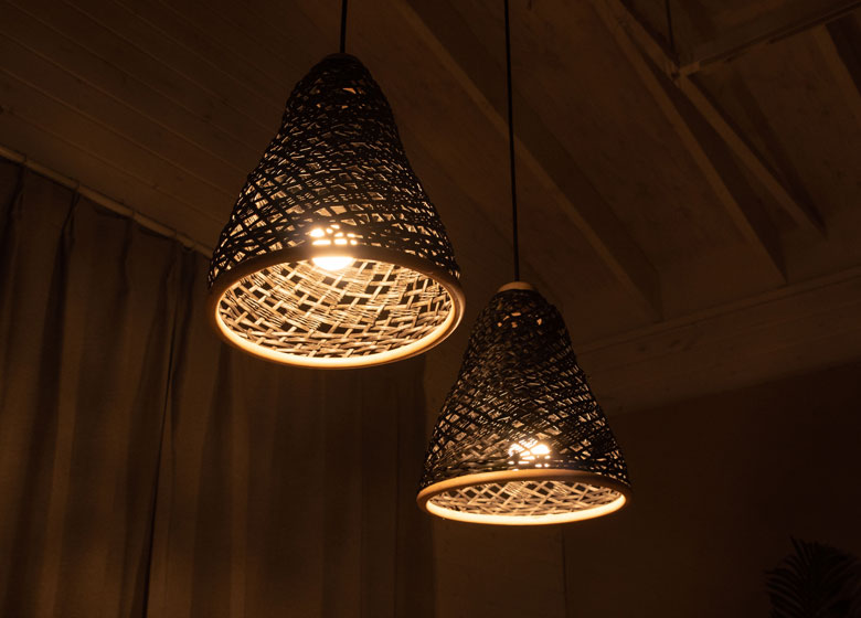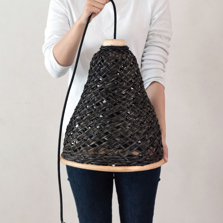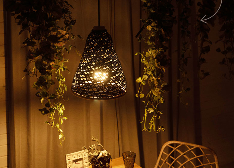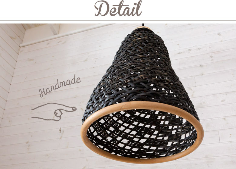 こちらは天然素材のラタン(籐)を編み込んで作られたランプシェード。