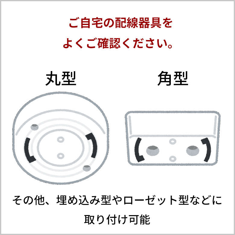 図のような、一般的な配線器具が天井についていれば、 簡単に取り付けが可能です。 |