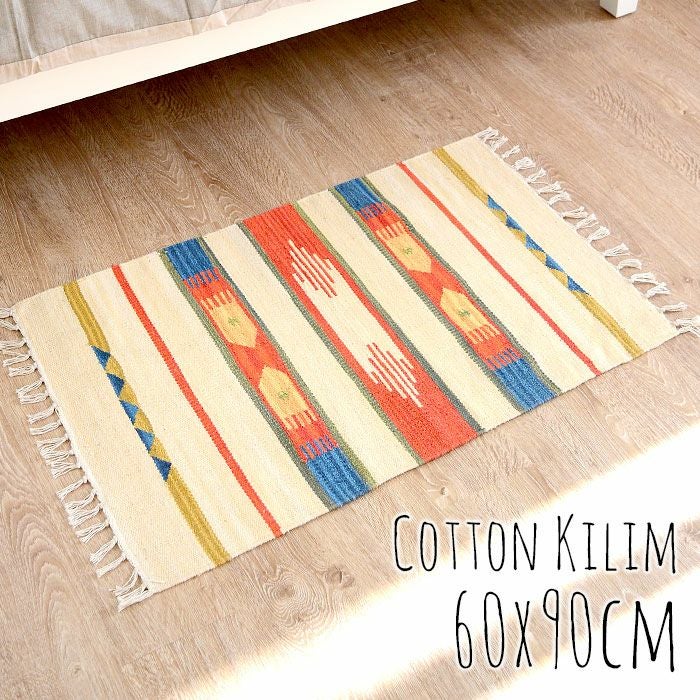 大注目のキリム調ラグ☆お部屋の主役インテリアになるエスニックラグ コットンキリム マット 60×90cm [Aタイプ] (31100]【アジアン雑貨のアジア工房本店】