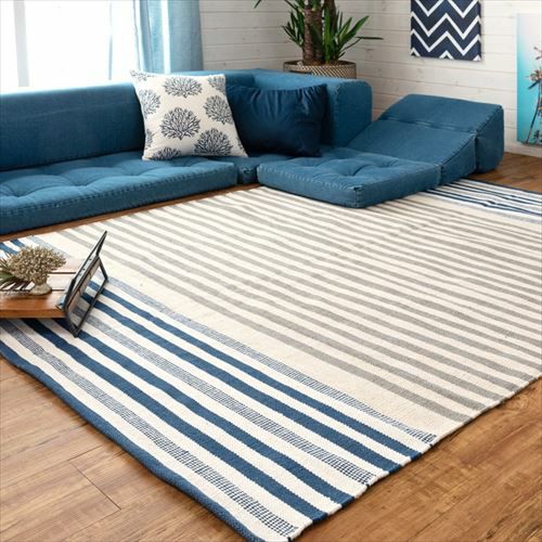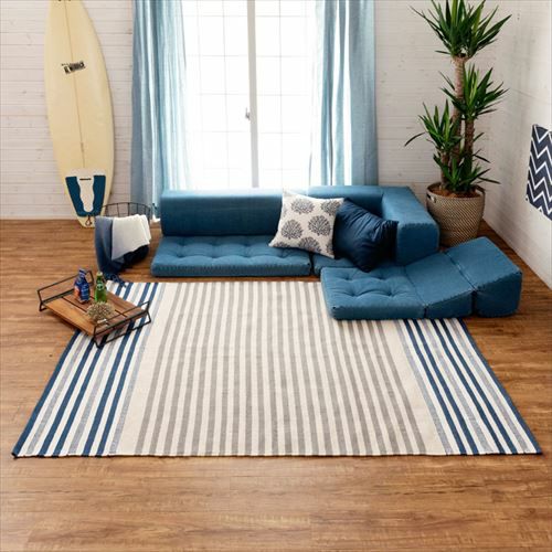 ソファ前に敷いて、爽やかなくつろぎスペースが完成。