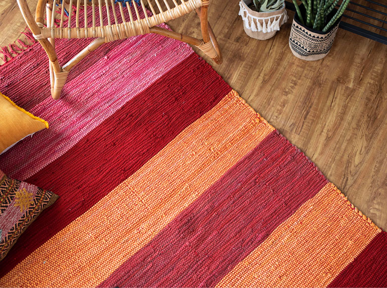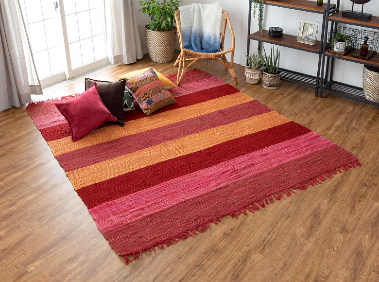 繊維の国インドからやってきた、丈夫な綿100%のラグ!