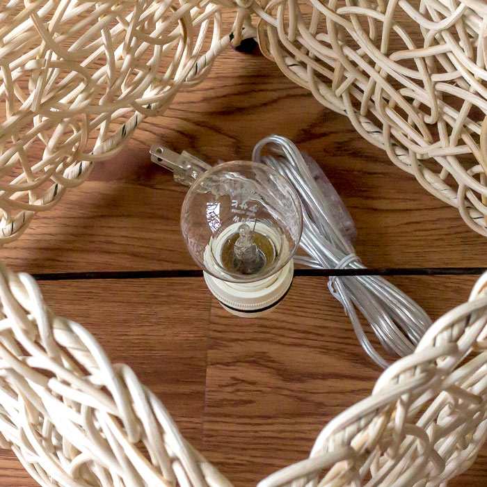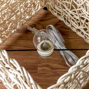 スイッチを入れると丁寧に編まれたラタンの隙間から木漏れ日のようなヒカリが溢れ、