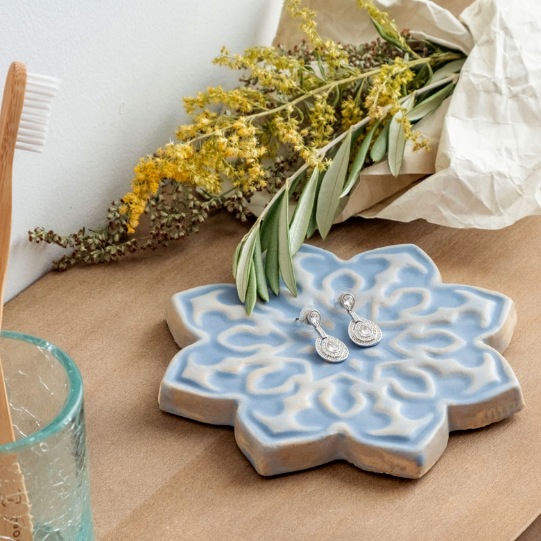 コースターや花瓶敷きにしたり、アクセサリーを置いてディスプレイしたり。