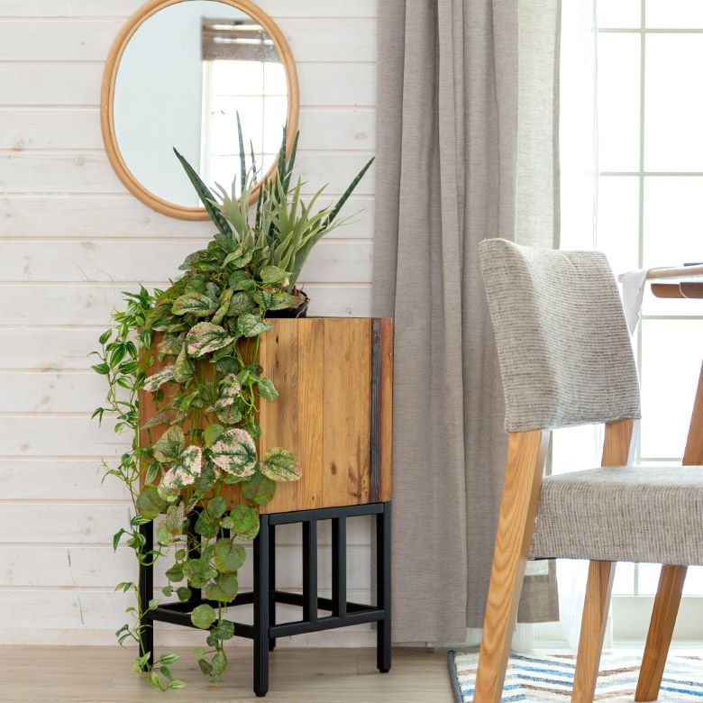 ▲お手入れ不要!グリーンインテリアを楽しめるフェイク観葉植物