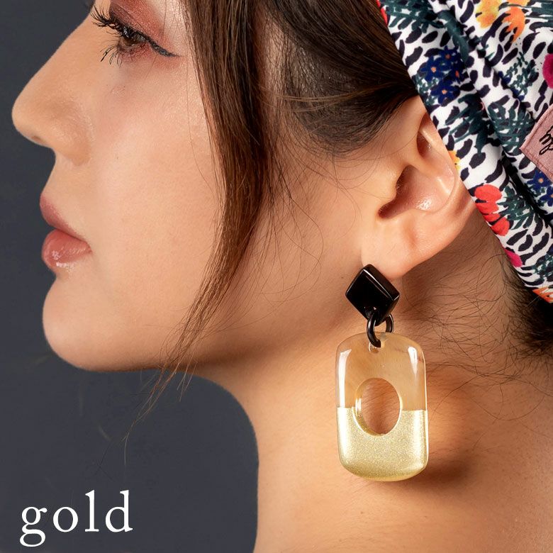 こちらのピアスは、職人により丁寧に手作業で作られた美しいキャトルホーン(牛の角)と、