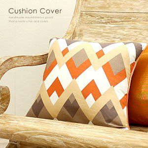 オレンジのポイントカラーが目を惹くクッションカバーは、アジアンにも