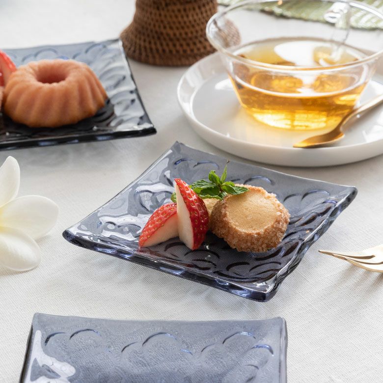 デザートやカットフルーツなどを乗せるのにぴったりな10cm角。