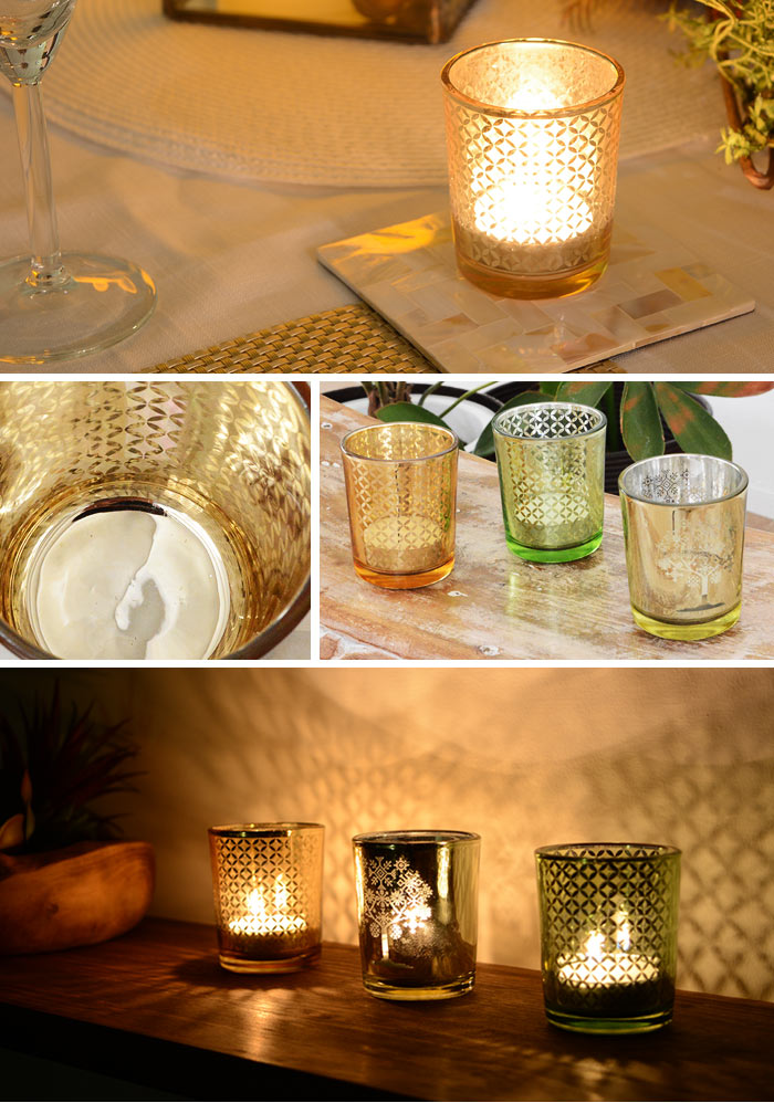 キャンドルを灯すと模様がくっきりと現れて、デザインの美しさを楽しめます。